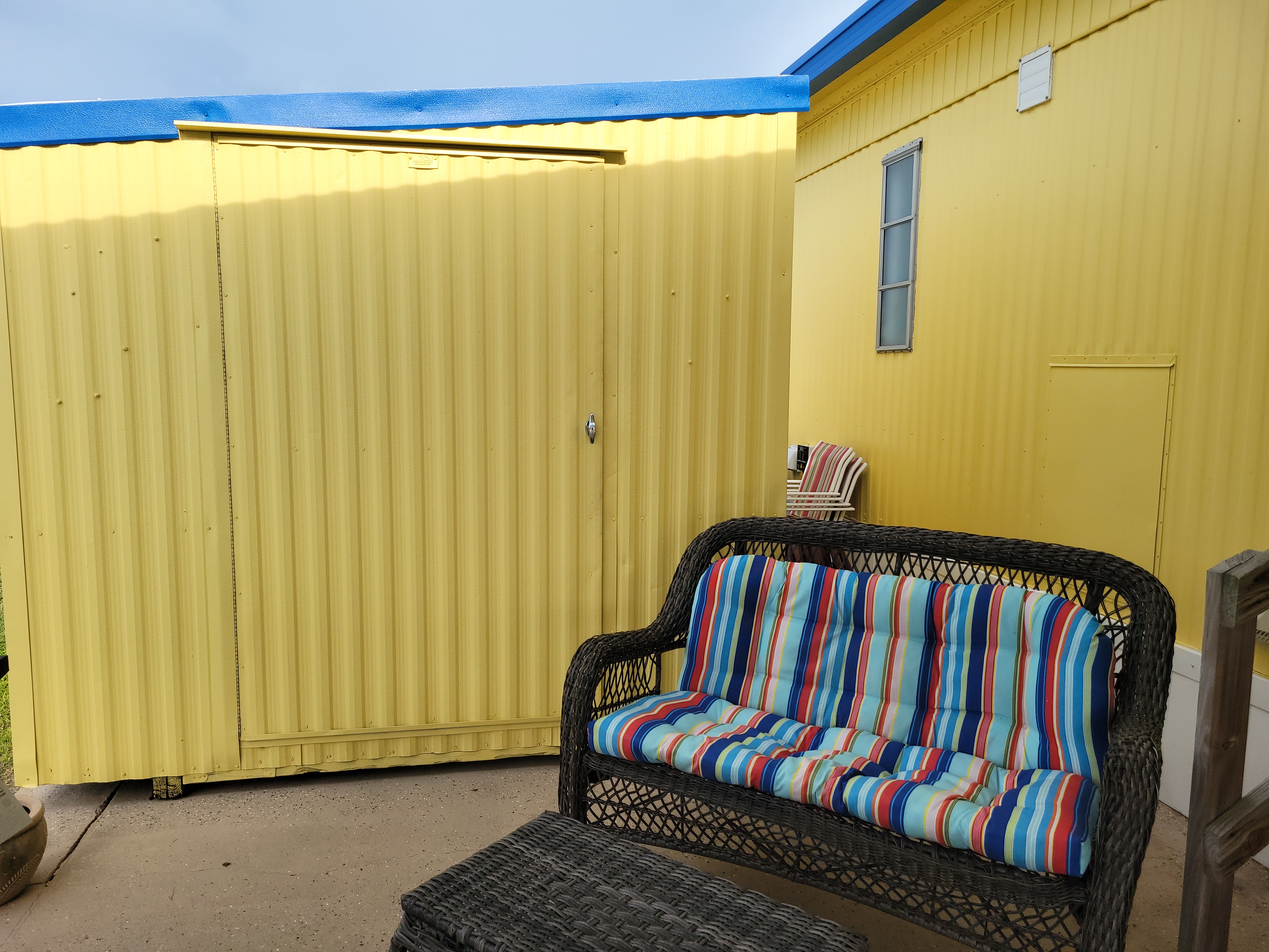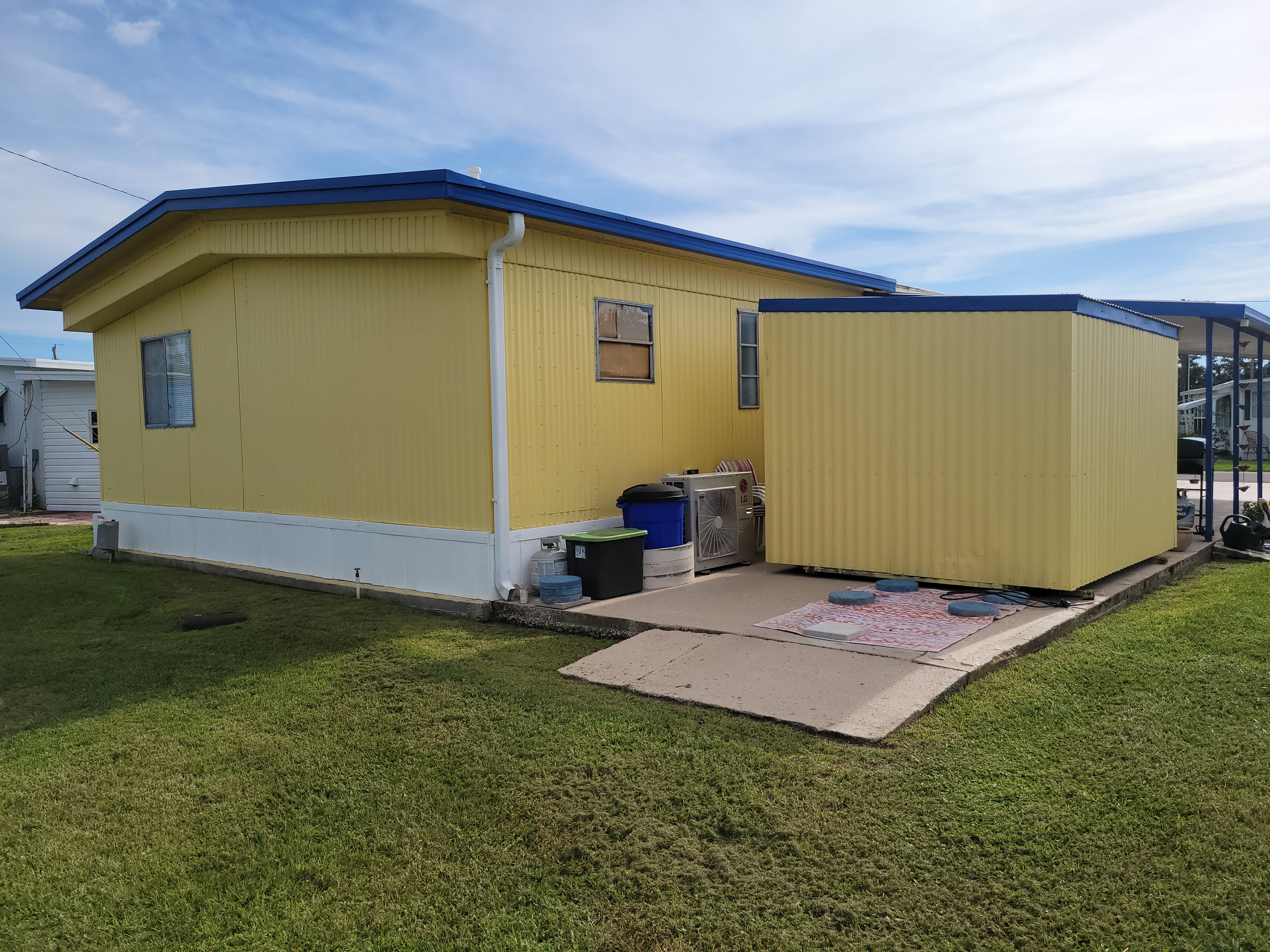 Aluminum Siding; Carport; Ceiling Fan(s); Central A/C; Community Clubhouse; Community Pool; Covered Porch; Dryer; Furnished; Hot Water Heater; Laundry Area in Home; Metal Roof; Non-Smoking Owner; Parking - 2 Car; Patio; Pet Friendly under 45 lbs; Oven/Range; Refrigerator; Roof Over; Shed; Stainless Steel Appliances; Tub/Shower Combo; Vinyl Plank Flooring; Walk-In Closet(s); Washer; Window Treatments;Approximate Size