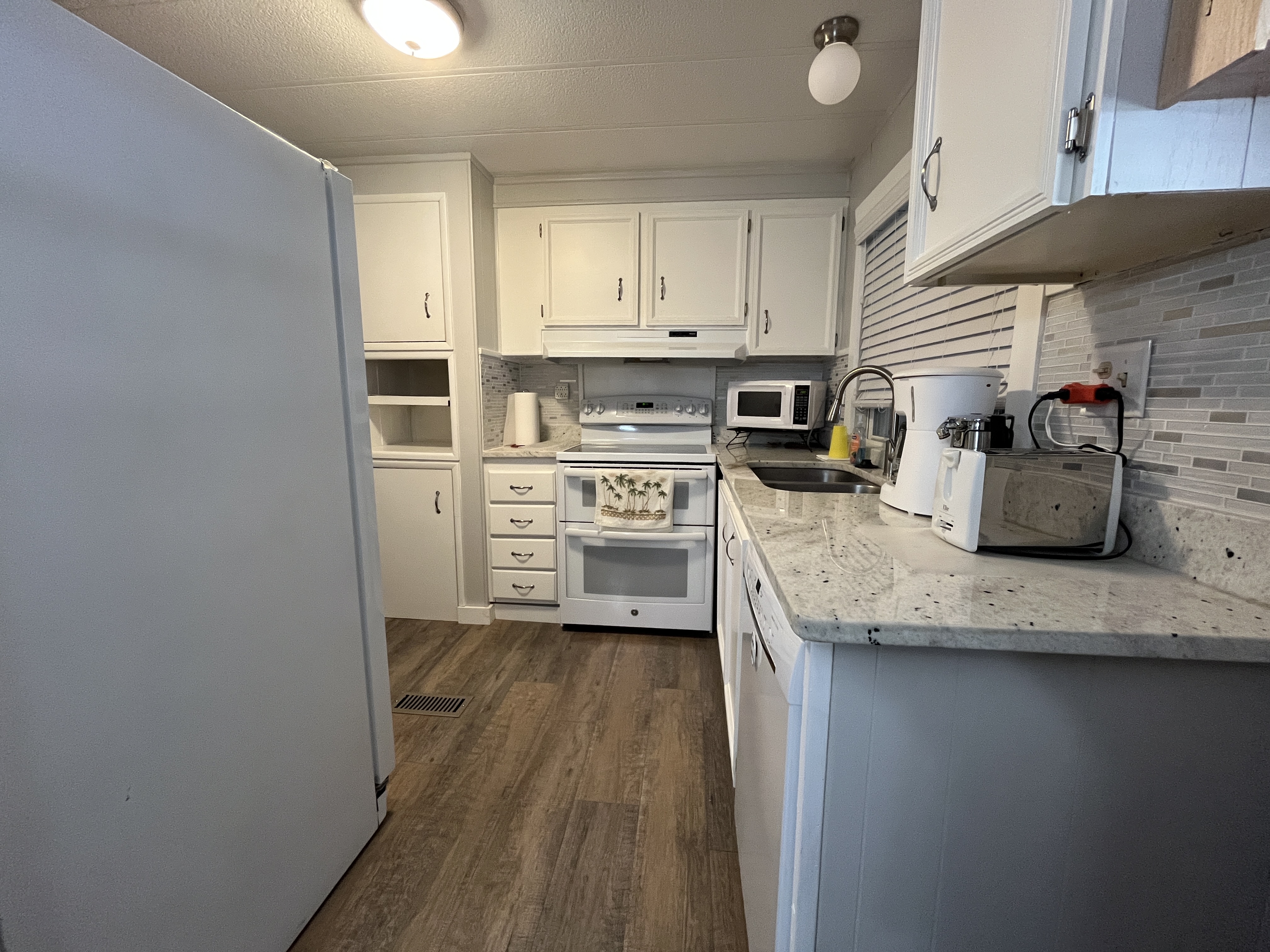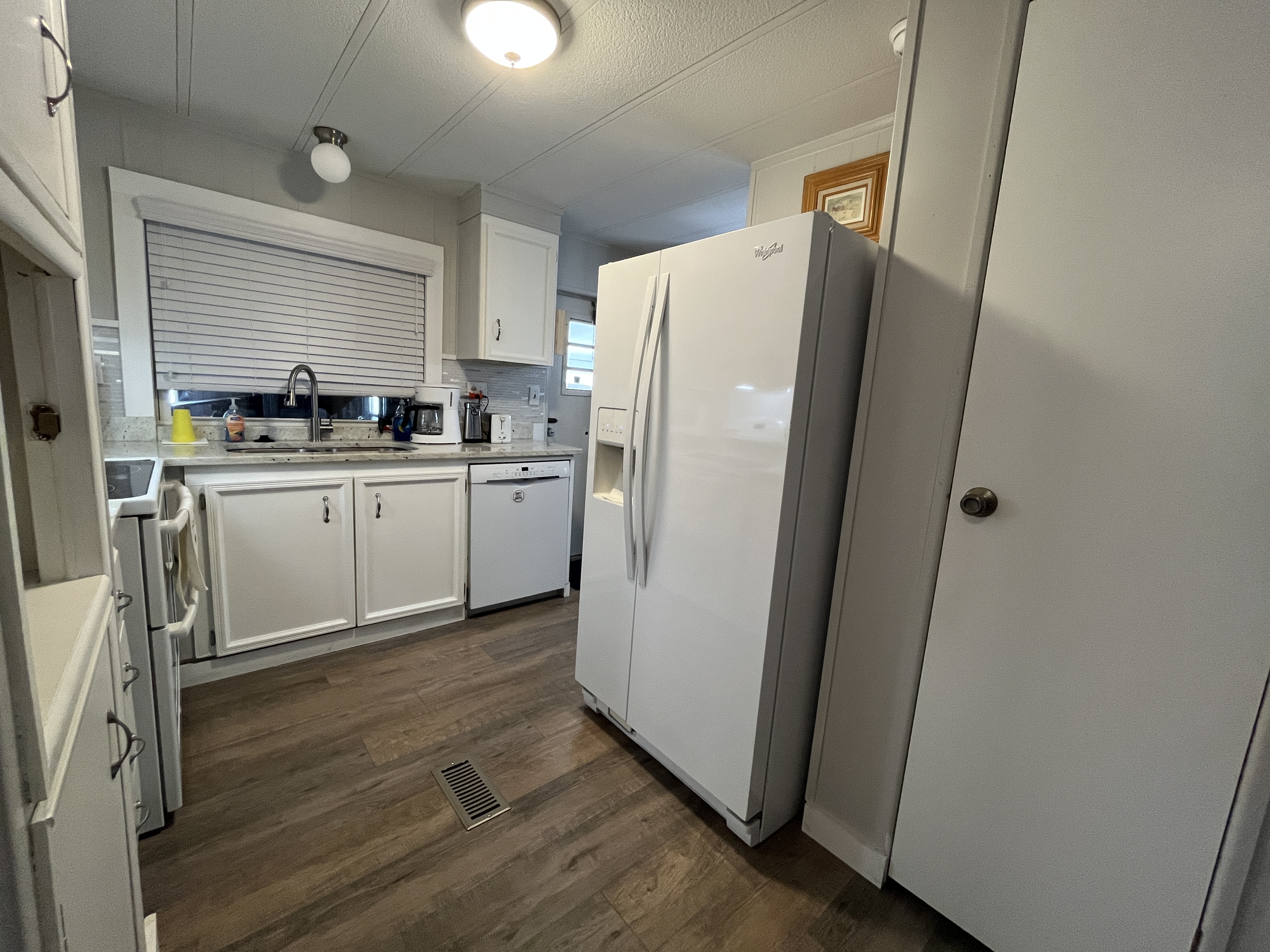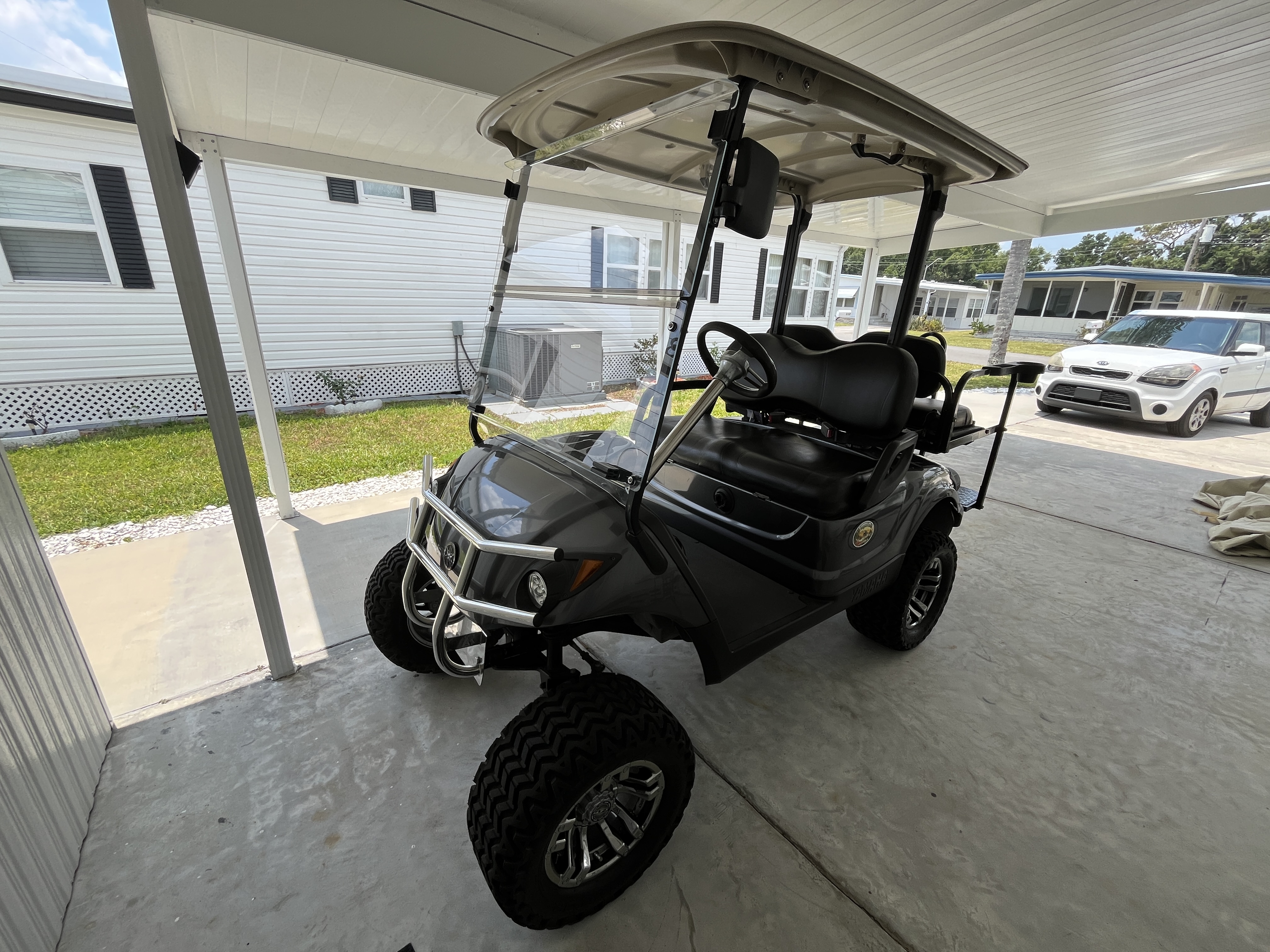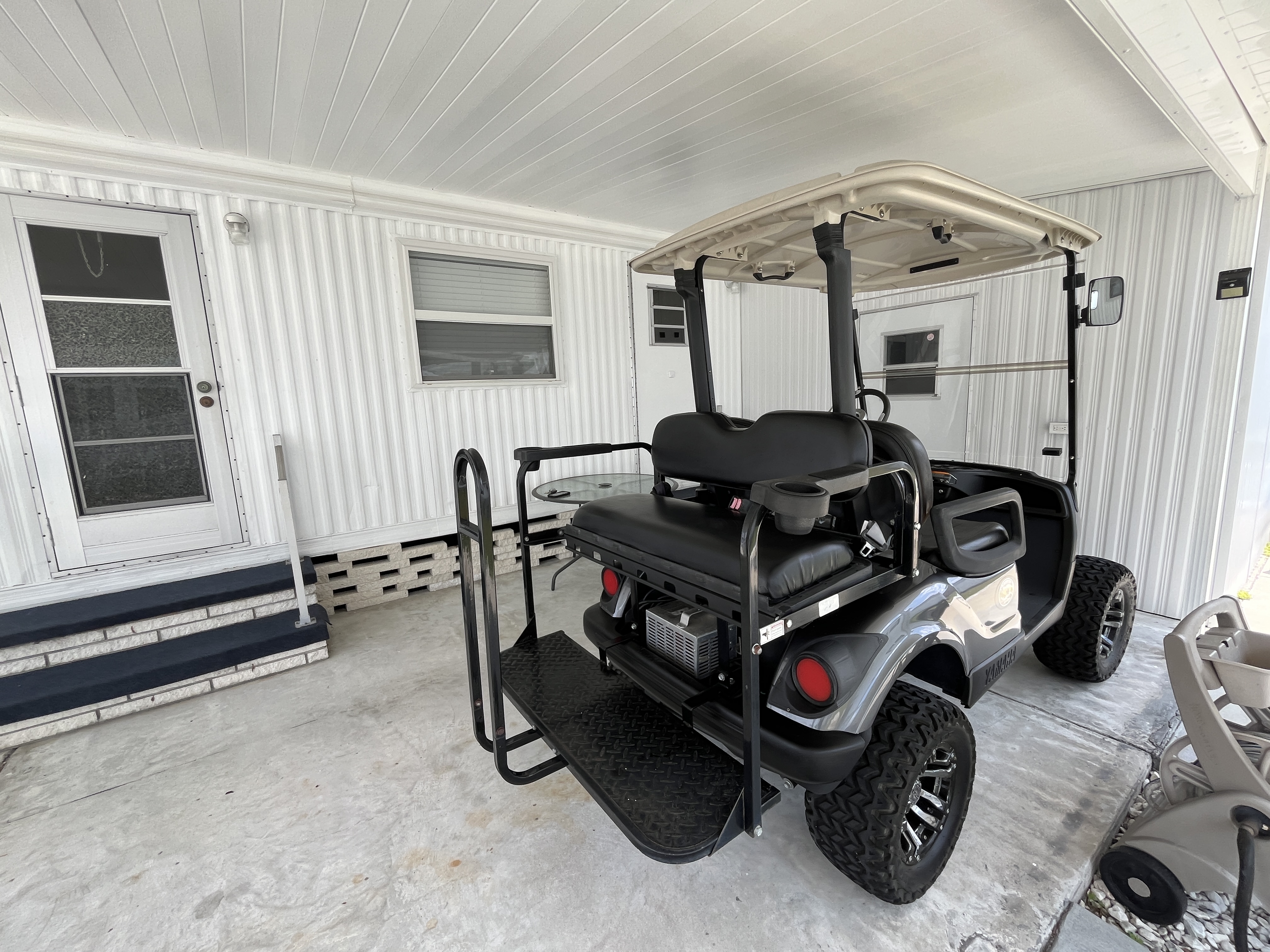 Beautifully maintained home, very clean, 3 bedroom, 2 bathroom with flex room. This home is turnkey with beautiful newer laminate floors and ceramic tile in bathrooms. 2023 HVAC, new window blinds, new vapor barrier and insulation under home. This home is picture perfect with all the special extras and comes fully furnished. Multiple car carport, utility shed and workshop attached as walkthrough from utility room. The washer and dryer are in the 3rd bedroom and can be relocated to the utility room which still has hookups ready to go. This MUST SEE Home is 24×48 and rooms measure as follows: Master-13’10”x10’10”, Bedroom 2-9’x10’9”, Bedroom 3-11’x11’10” and Flex room-11’x11’10”. The 2011 Yamaha golf cart with new batteries, windshield and gauge comes with the home as well. This one won’t last long, so schedule your showing today!