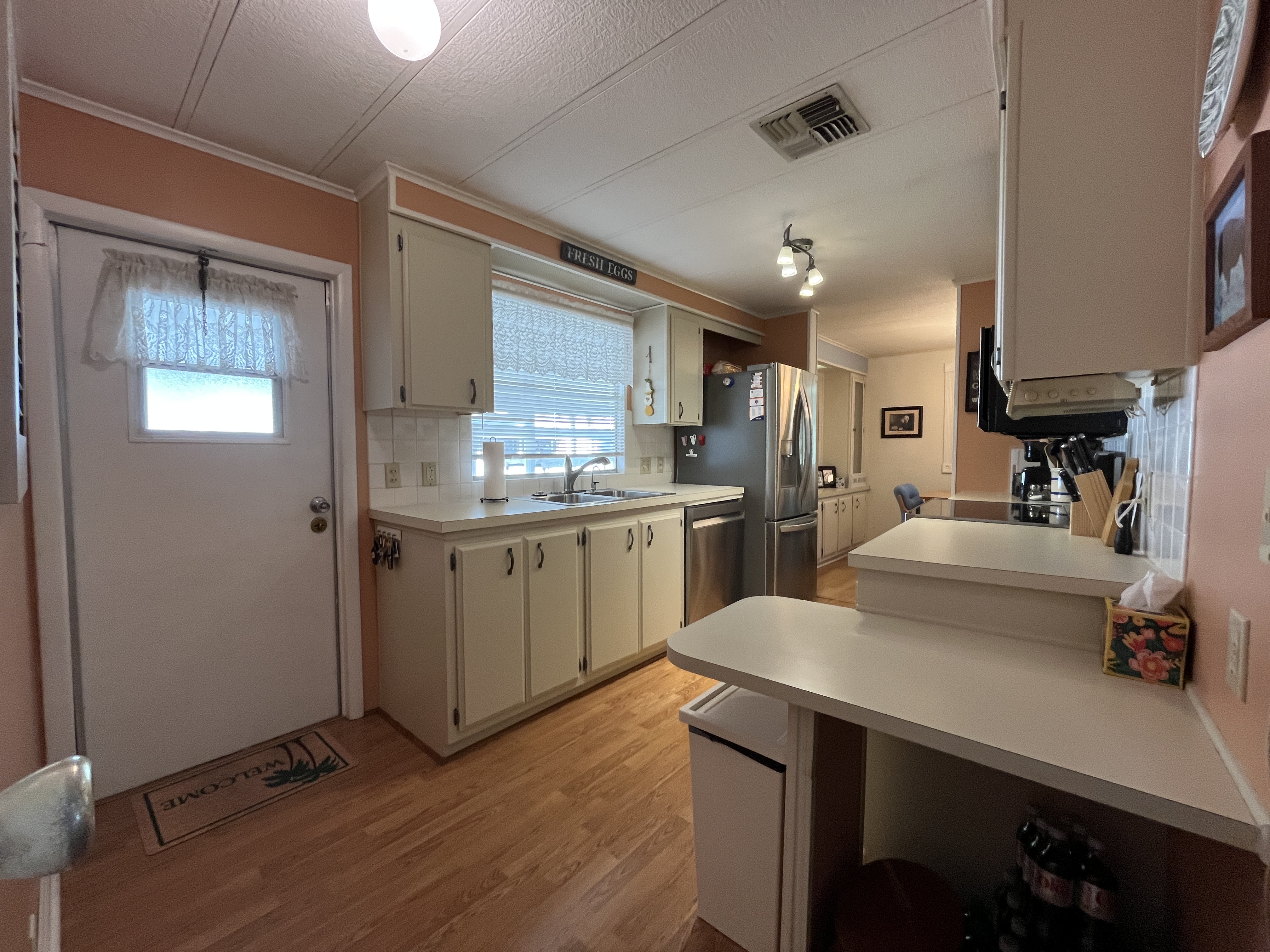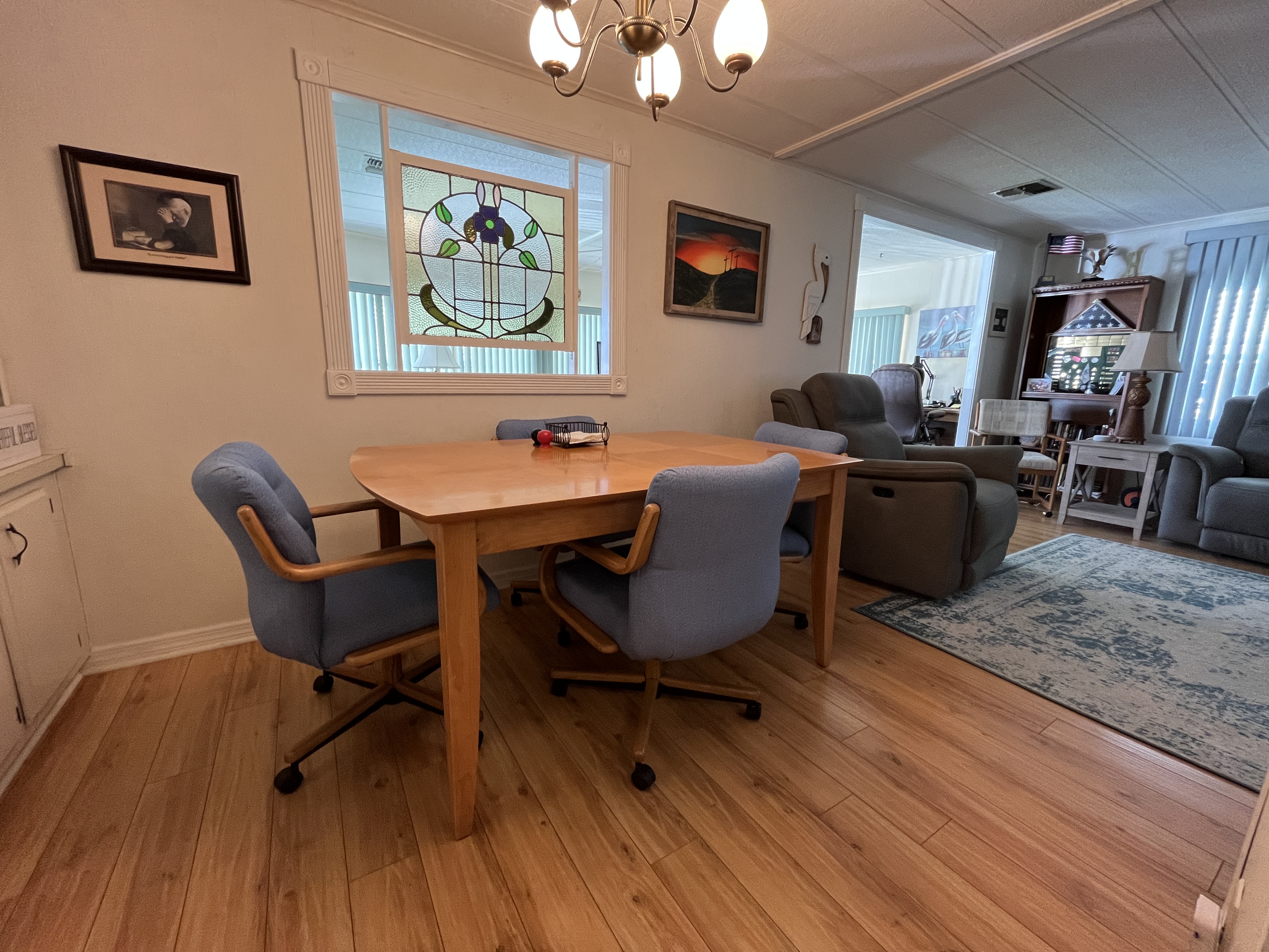 Twin Palms is also pet-friendly (two pets allowed, breed restrictions apply), and the monthly fee package ($1,222.15) includes land lease, water, sewer, trash, property taxes, Spectrum cable/internet, and full use of all amenities.