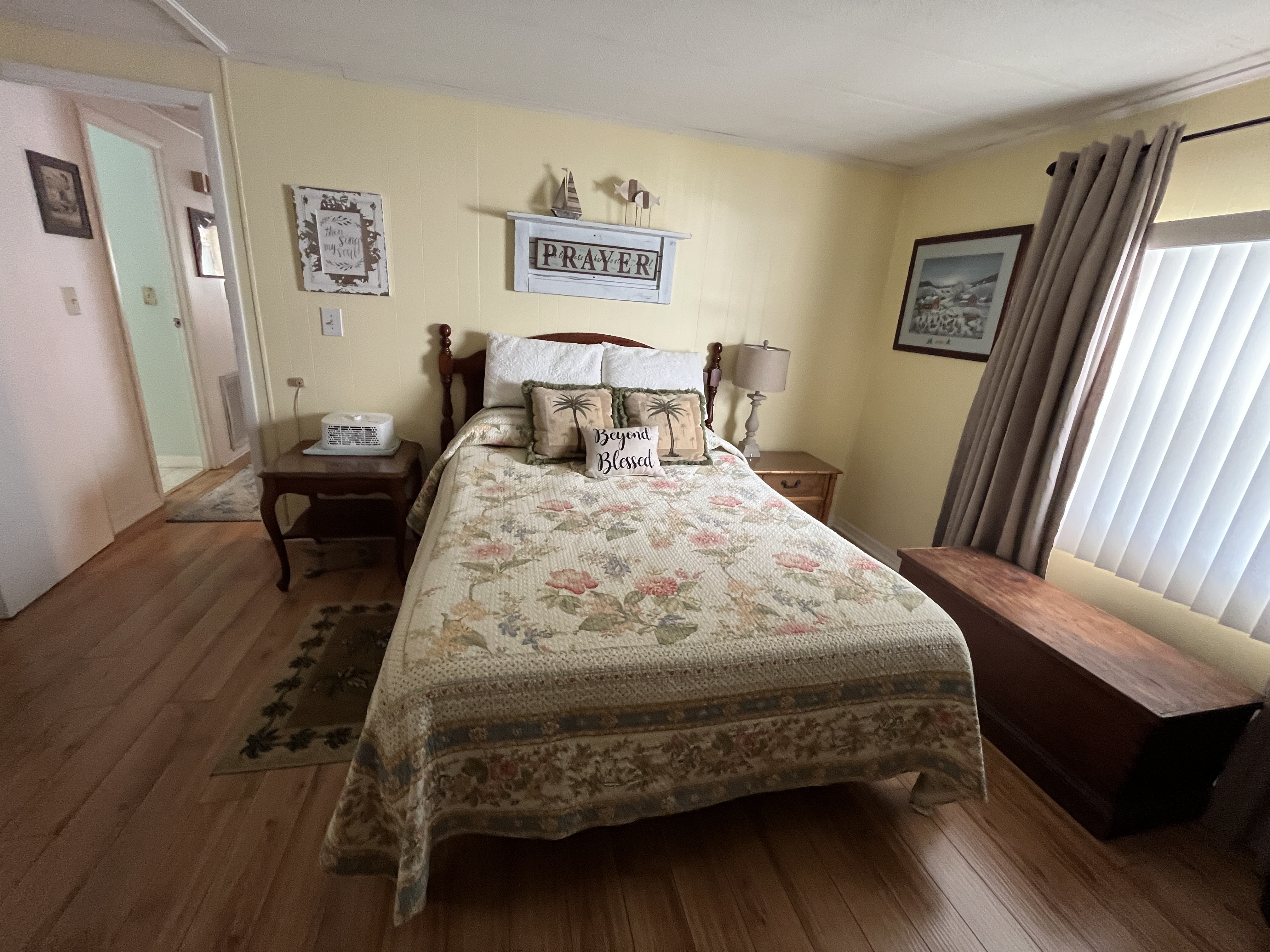 Your four-season air-conditioned room spans the entire front of the home — tastefully decorated and bathed in natural light — making it the ideal spot for morning coffee or sunset relaxation.