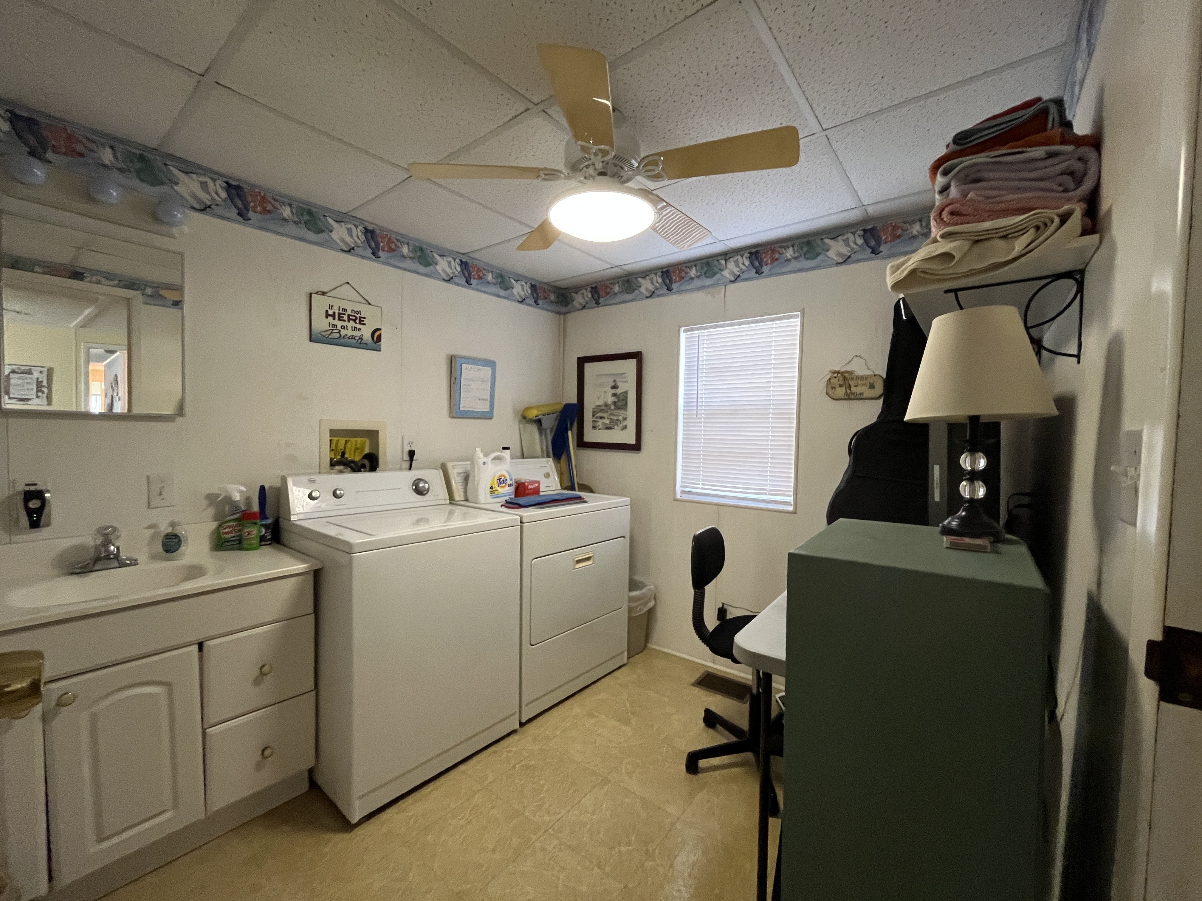 Retreat to your spacious master suite, easily accommodating a king bed, complete with two large walk-in closets and a private laundry area that includes a utility sink, washer, dryer, and even a desk nook.