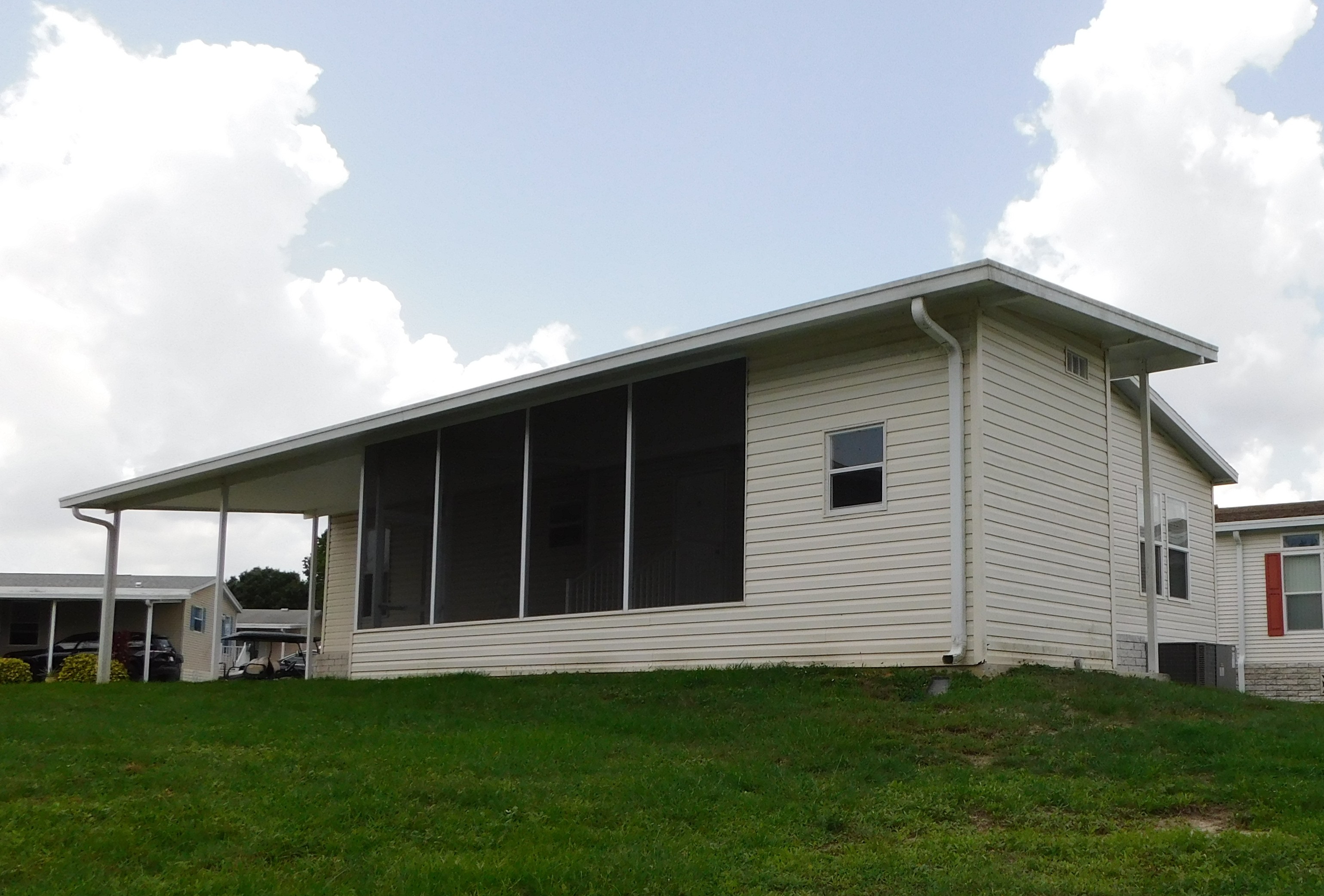 Carpet; Carport; Ceiling Fan(s); Central A/C; Community Clubhouse; Community Pool; Covered Porch; Dishwasher; Hot Water Heater; Laundry Area in Home; Non-Smoking Owner; Parking - 2 Car; Pet Friendly under 25 lbs; Oven/Range; Refrigerator; Screen Porch; Shed; Shingle Roof; Smoke Detectors; Tub/Shower Combo; Unfurnished; Vinyl Sheet Flooring; Vinyl Siding; Walk-In Closet(s); Walk-In Shower; Window Treatments;