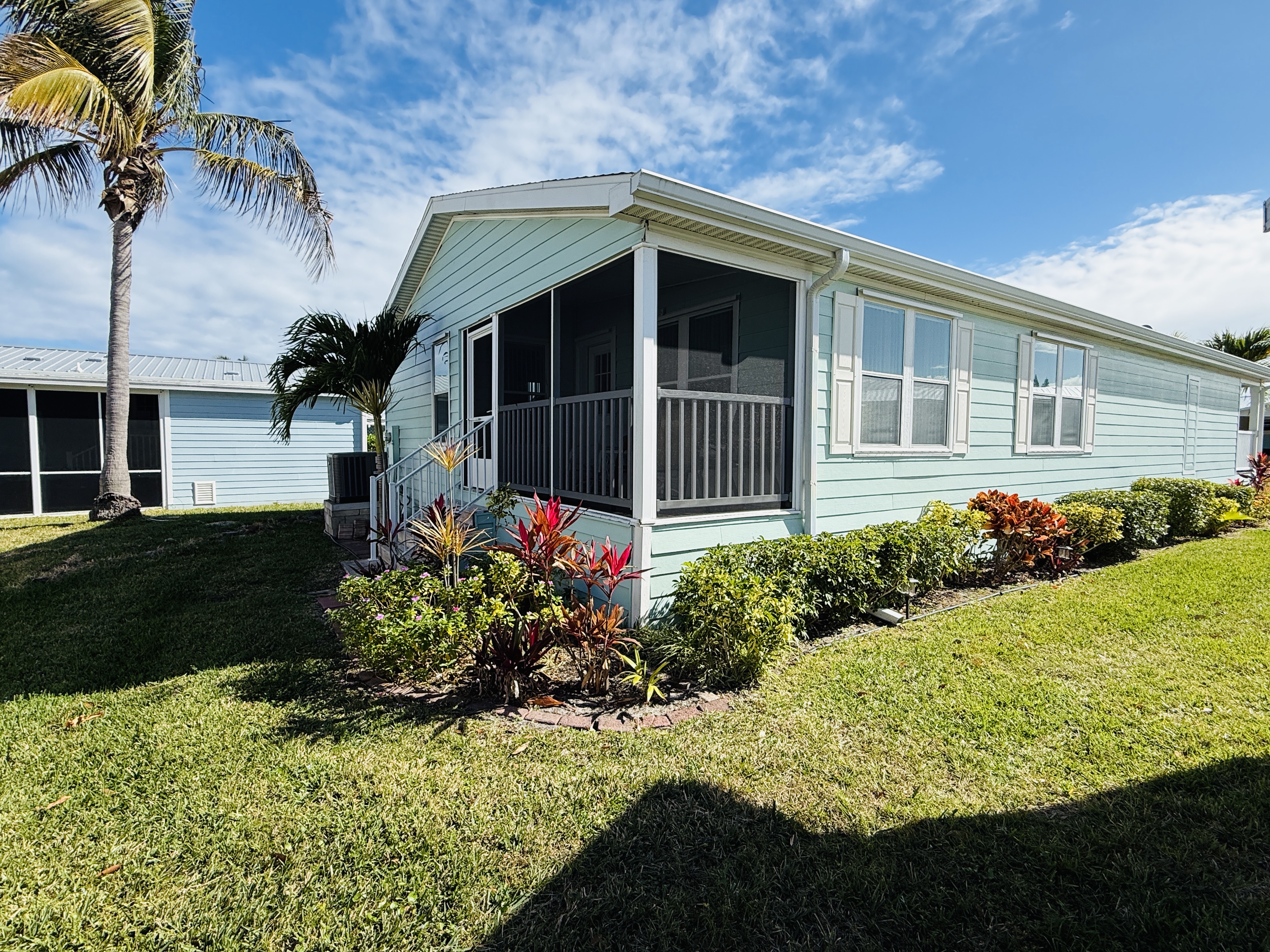 165 Flora Lane built by Palm Harbor, boosting an impressive 1,425 sq ft under air, generous size living and dining room, flooded with natural light, and a pleasant paint color palette. The TV room/den is an extra bonus feature of this floorplan, The well-designed primary bedroom with en suite bath affords both comfort and privacy. The inviting second bedroom with nearby guest bath completes the layout of this perfectly designed quality home. An additional 180 sq ft of covered decking, making this home a total of 1,605 under roof. The owner has meticulously maintained, updated and serviced the home. Fairlane Harbor is a land lease community located on Florida’s sun-drenched Treasure coast. Along the banks of the Indian River, an outstanding community offering great amenities and full -time event calendar jam packed! please call for your Personal Showing.