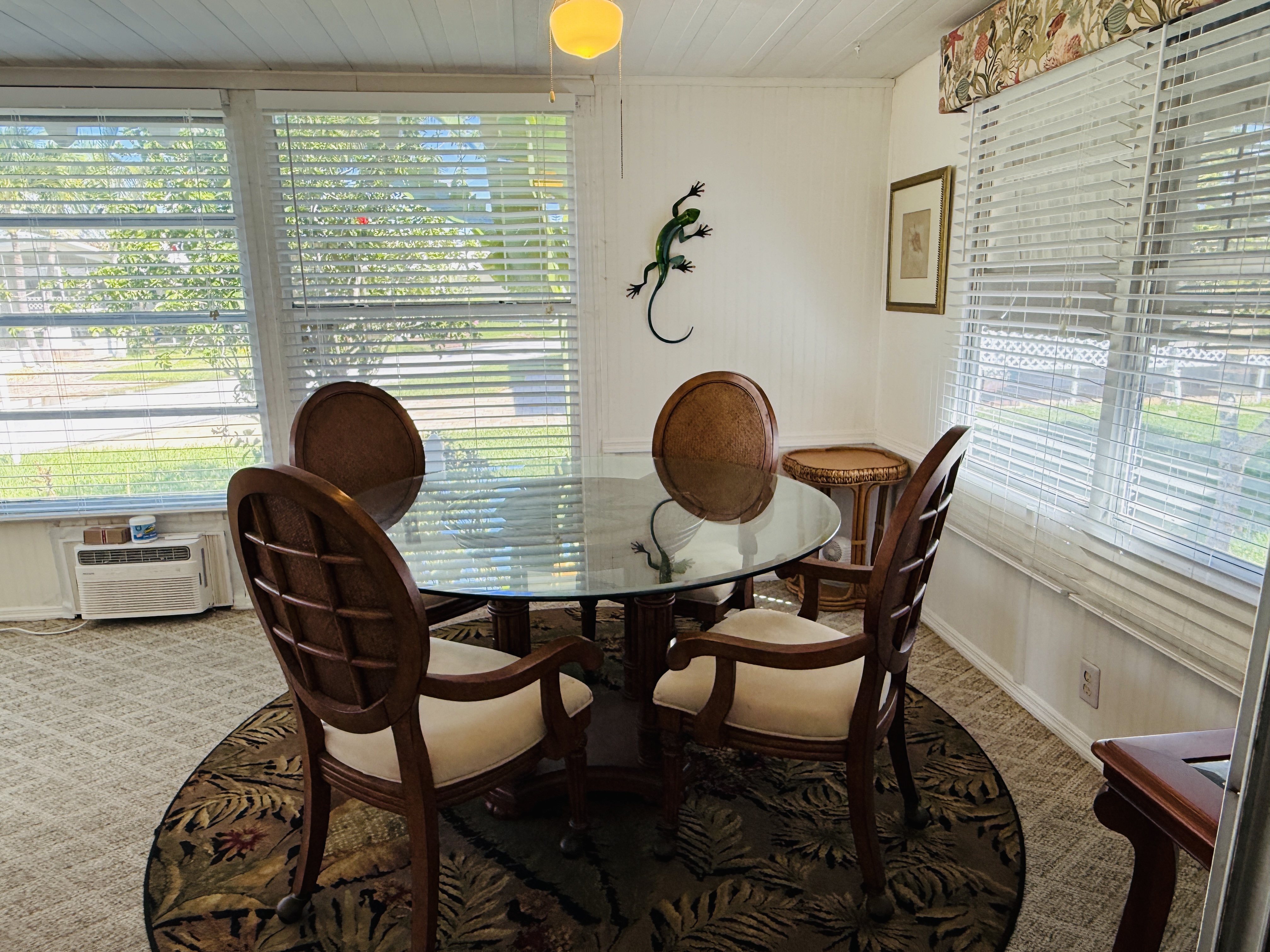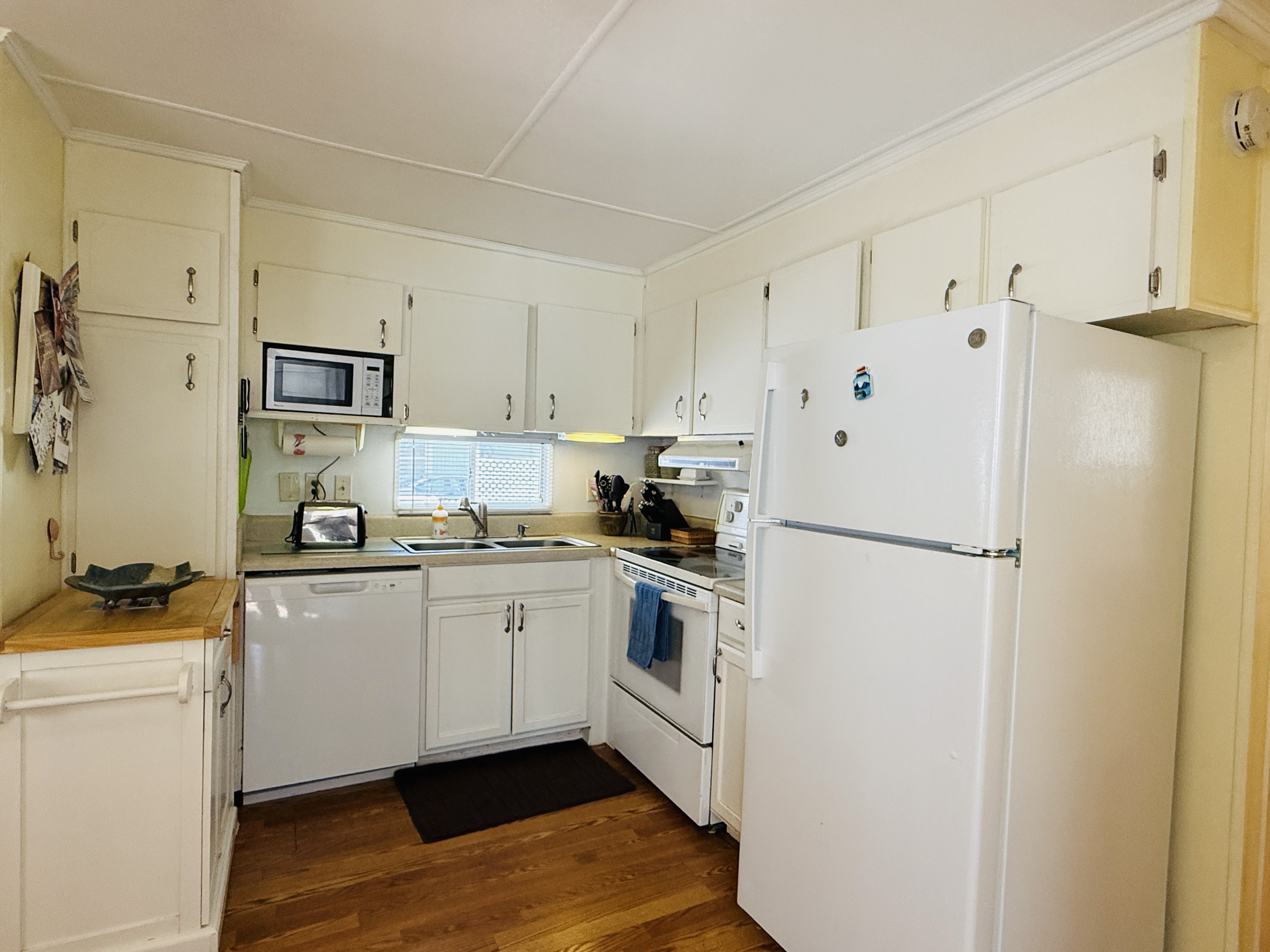 Carpet; Carport; Ceiling Fan(s); Central A/C; Community Clubhouse; Community Pool; Covered Porch; Dishwasher; Dryer; Enclosed Porch; Florida Room; Furnished; Gated Community; Hot Water Heater; Laundry Area in Home; Microwave; Non-Smoking Owner; Open Porch; Parking - 2 Car; Pet Friendly under 45 lbs; Oven/Range; Refrigerator; Roof Over; Shed; Smoke Detectors; Stacking Washer/Dryer; Turnkey Furnished; Walk-In Shower; Window Treatments; Wood Flooring;Approximate Size