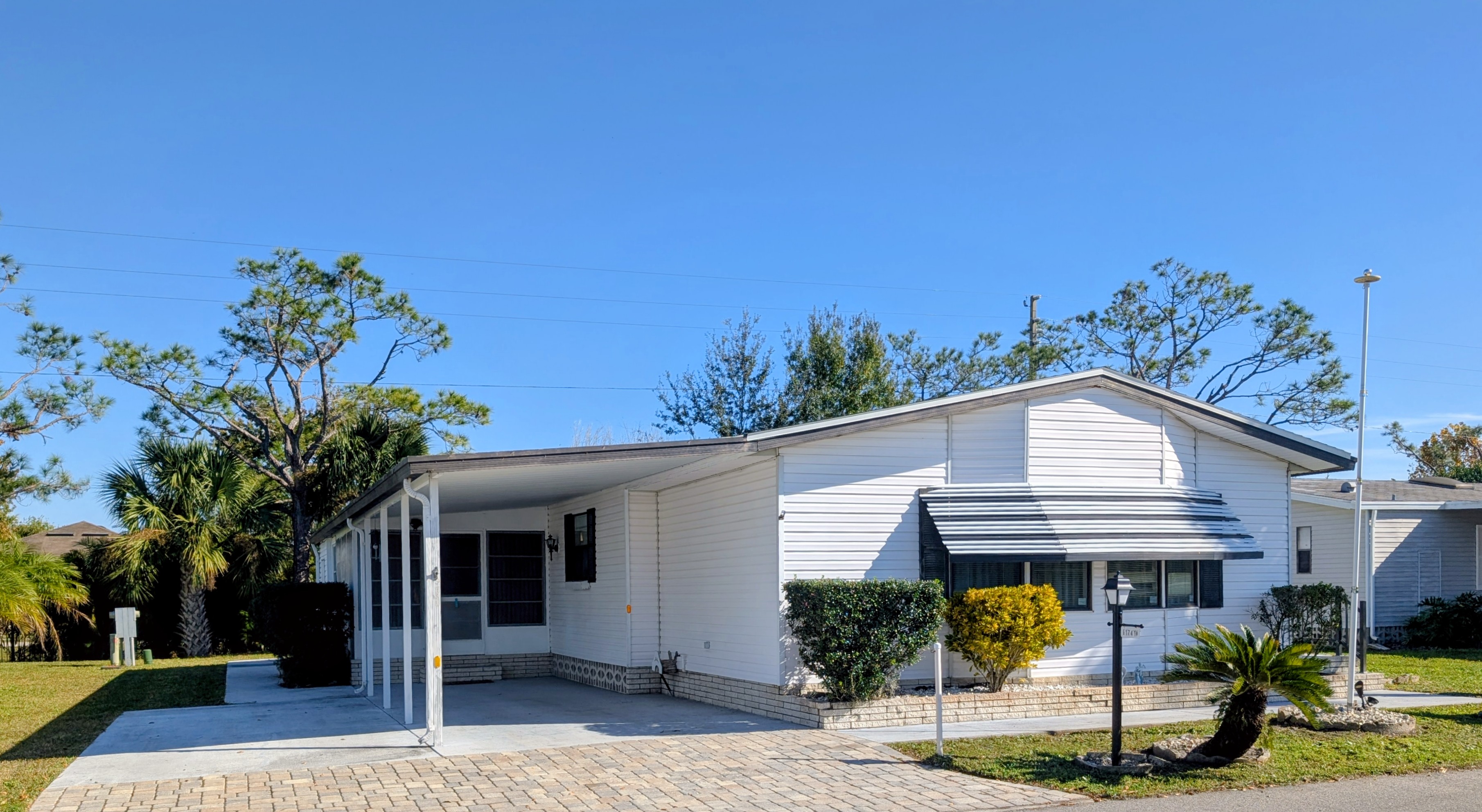 Welcome home to this lovely 2 bedroom, 2 bath home in beautiful Whispering Pines 55+ Community! This 1456 sf home has all the comforts you are searching for today! It’s raised 10′ x 15′ raised lanai provides a comfortable entry and fantastic spot to sit and unwind. With a formal dining room, large living room, family room and separate laundry room (with washer/dryer included) there is plenty of room for everything you’re bringing! If you love to cook, this kitchen is perfect for you! A large island provides extra storage, counterspace and offers opposite side seating. This home truly is a must see!
