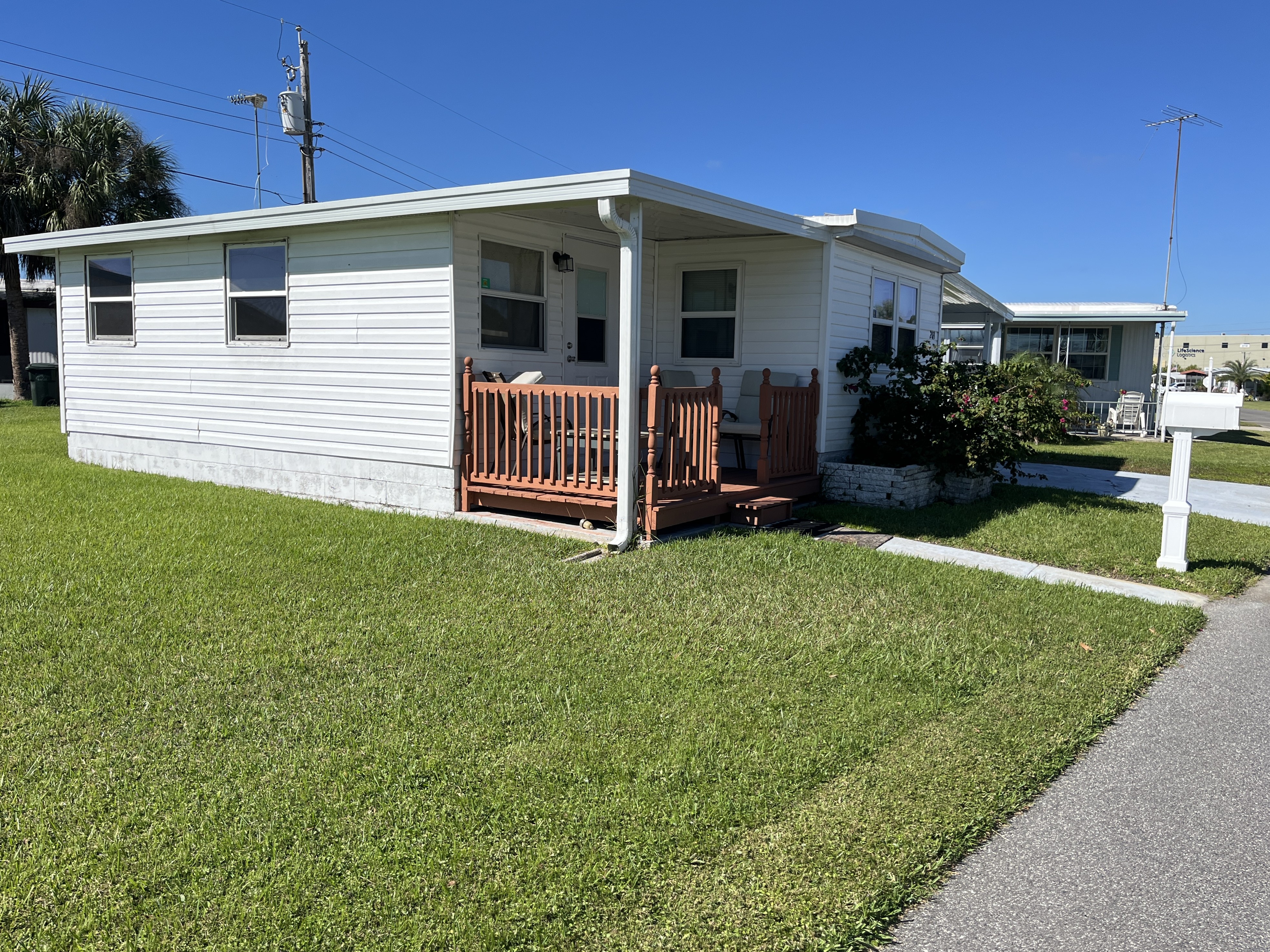 Well maintained and updated 2-bedroom, 2-bath mobile home features an enclosed Lanai, flex room, utility room and open front porch. The home is perfect as a second home or for your forever Florida home. Half of the roof is new. You will have a perfectly situated lot that offers a bit more room than usual. The washer and dryer connections are in the utility room at the end of the carport.