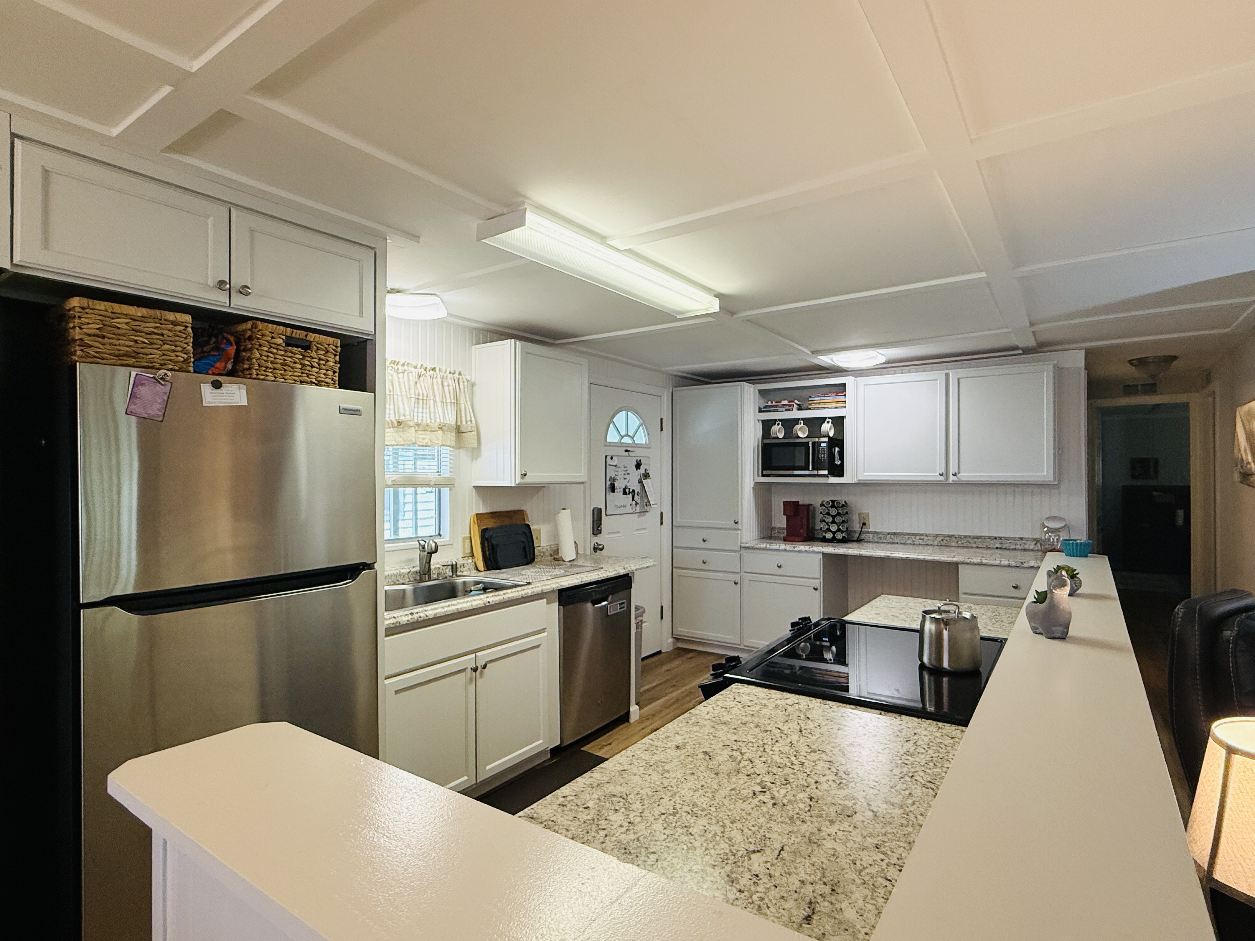 Carport; Ceiling Fan(s); Central A/C; Community Clubhouse; Community Pool; Community Storage; Covered Porch; Dishwasher; Dryer; Furnished; Gated Community; Hot Water Heater; Lanai; Metal Roof; Microwave; Non-Smoking Owner; Parking - 2 Car; Pet Friendly under 45 lbs; Oven/Range; Refrigerator; Roof Over; Screen Porch; Shed; Smoke Detectors; Stainless Steel Appliances; Turnkey Furnished; Vinyl Plank Flooring; Walk-In Closet(s); Walk-In Shower; Window Treatments;Approximate Size