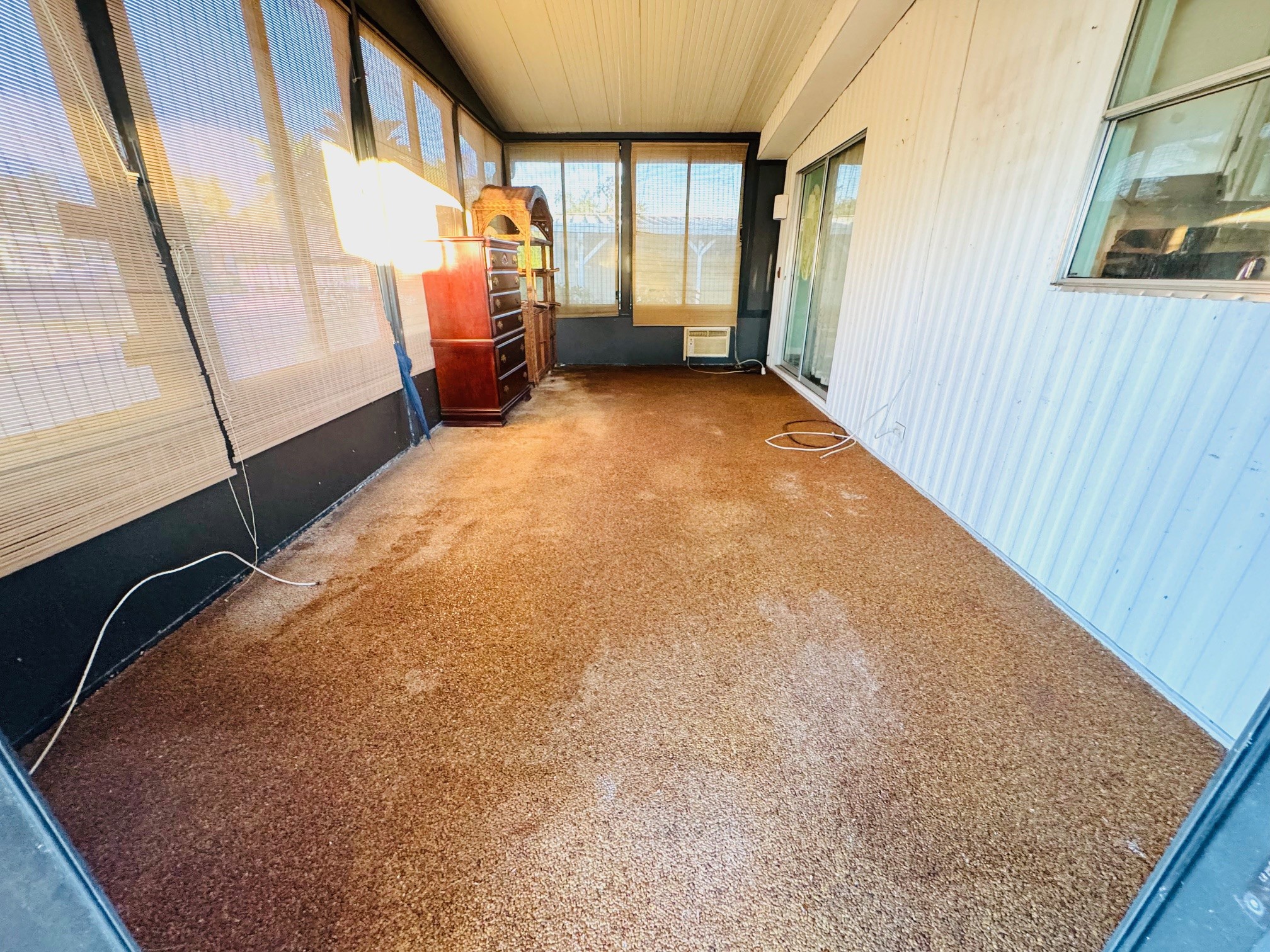 This home has a kitchen full of cabinets, a built in hutch, open living/ dining and kitchen area and off the living room is the Florida room. There is plenty of space for you to enjoy your friends and family when they come for a visit. There 2 bedrooms and 3 full baths too. The floors are laminate.
