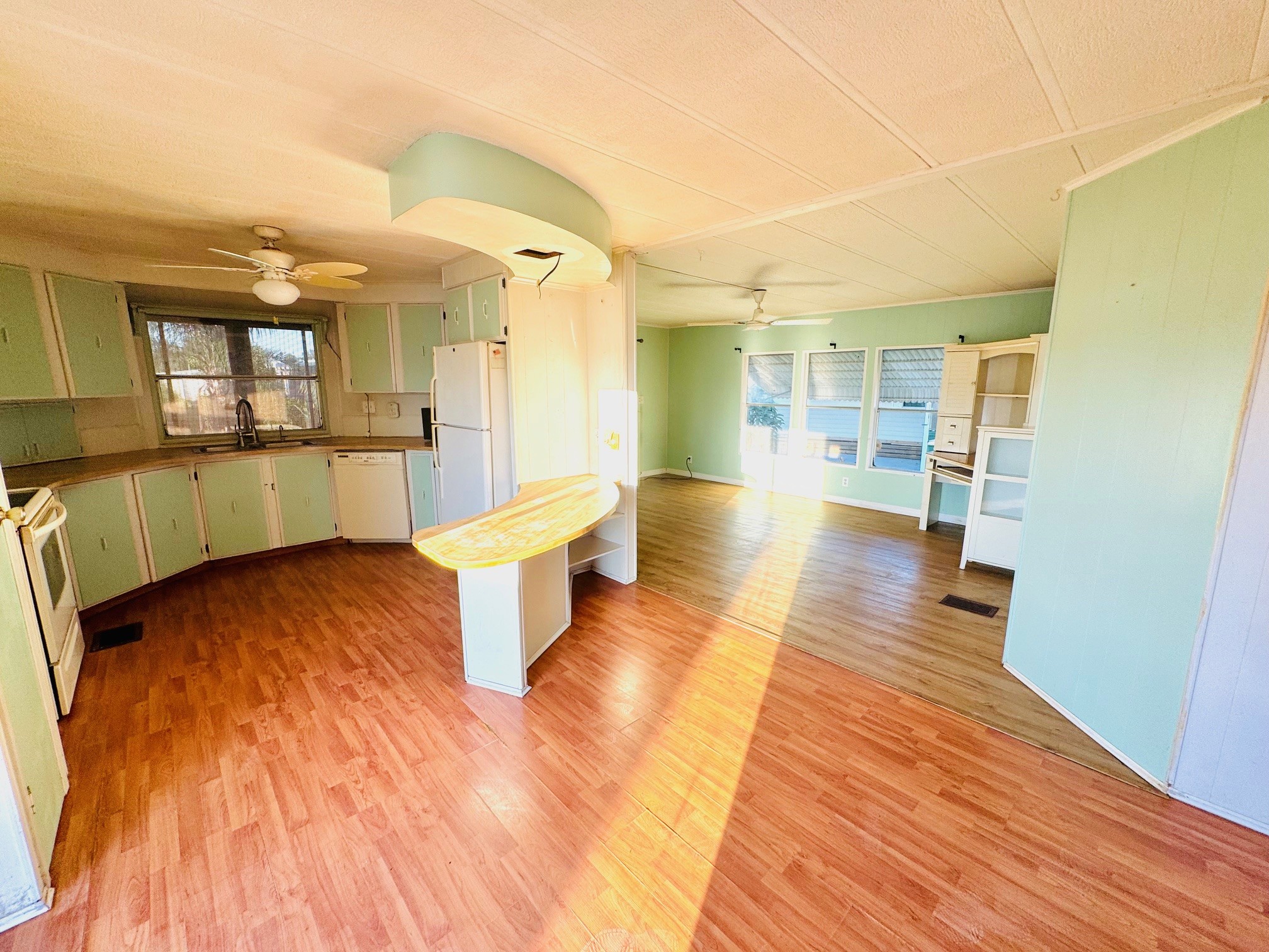 This Double wide 2 bedroom, 2 bath home is in a Gated 55+ Community. Just look where this home is situated. It is just footsteps to the mail boxes and if you go just a few more step down the pathway you will be at the Heated Salt Water Pool, Pickle Ball Court, 9 Hole Putt-Putt Golf, Corn Hole, Dog Park, Fire Pit and lets not forget all of this is beautiful situated at the water front. What a View!! There’s also kayaks for you to use and a fishing pier with a brand new fishing station.