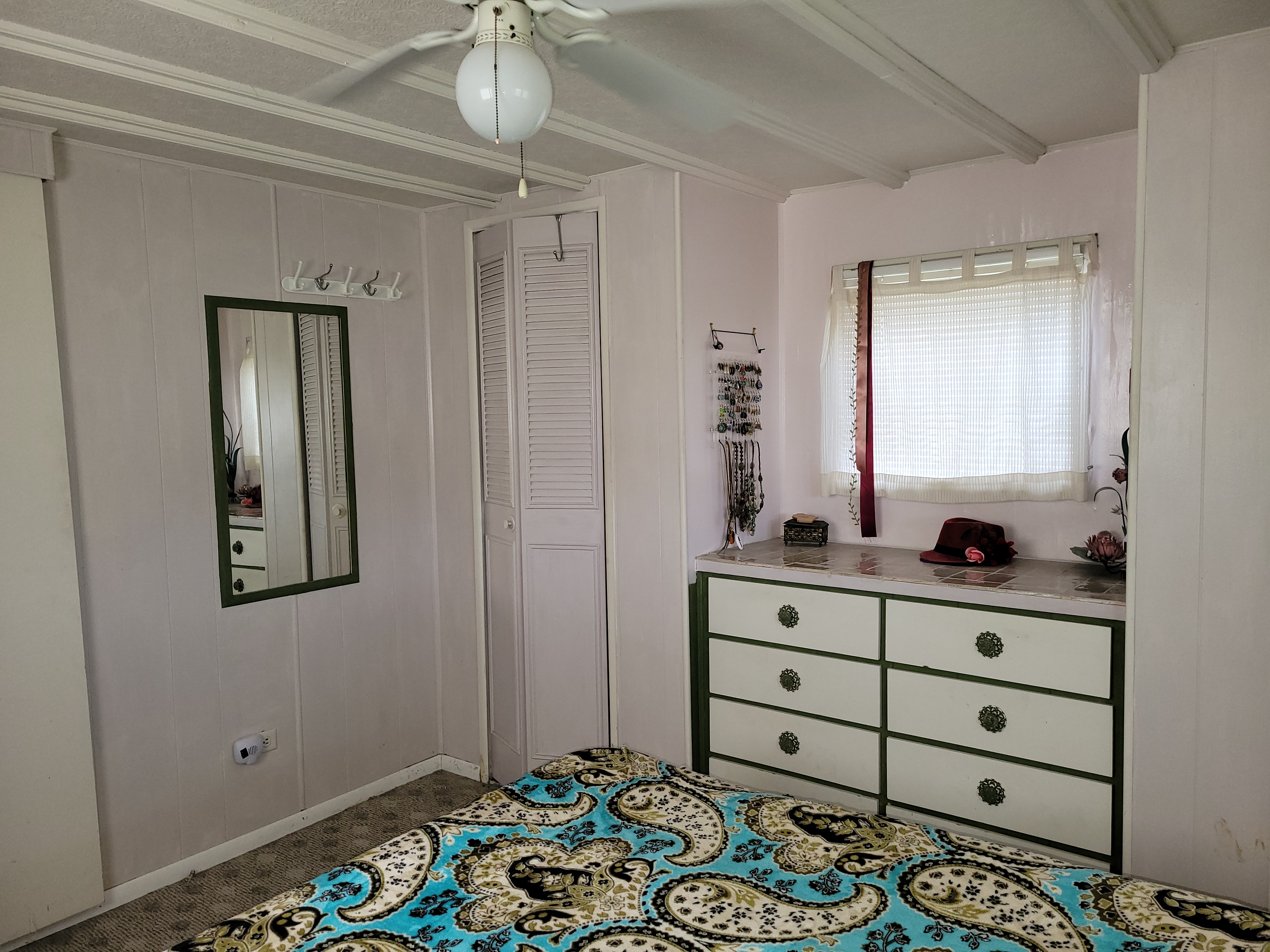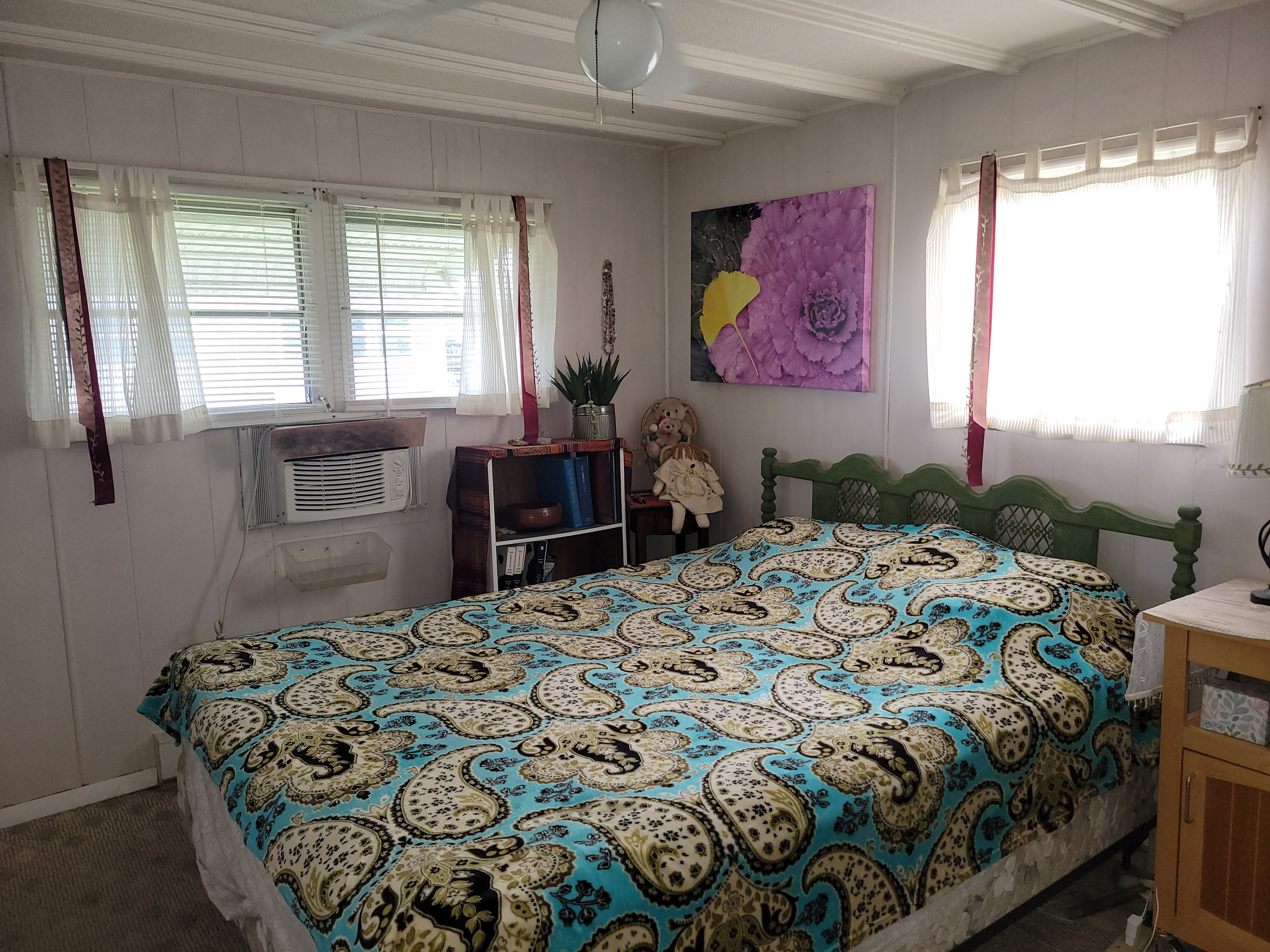 Aluminum Siding; Carpet; Carport; Ceiling Fan(s); Community Clubhouse; Community Pool; Covered Porch; Dryer; Enclosed Porch; Hot Water Heater; Lanai; Non-Smoking Owner; Parking - 2 Car; Patio; Pet Friendly under 45 lbs; Oven/Range; Refrigerator; Rubber Roof; Screen Porch; Shed; Smoke Detectors; Storm Shutters; Unfurnished; Vinyl Plank Flooring; Walk-In Shower; Wall/Window AC; Washer; Window Treatments;Approximate Size