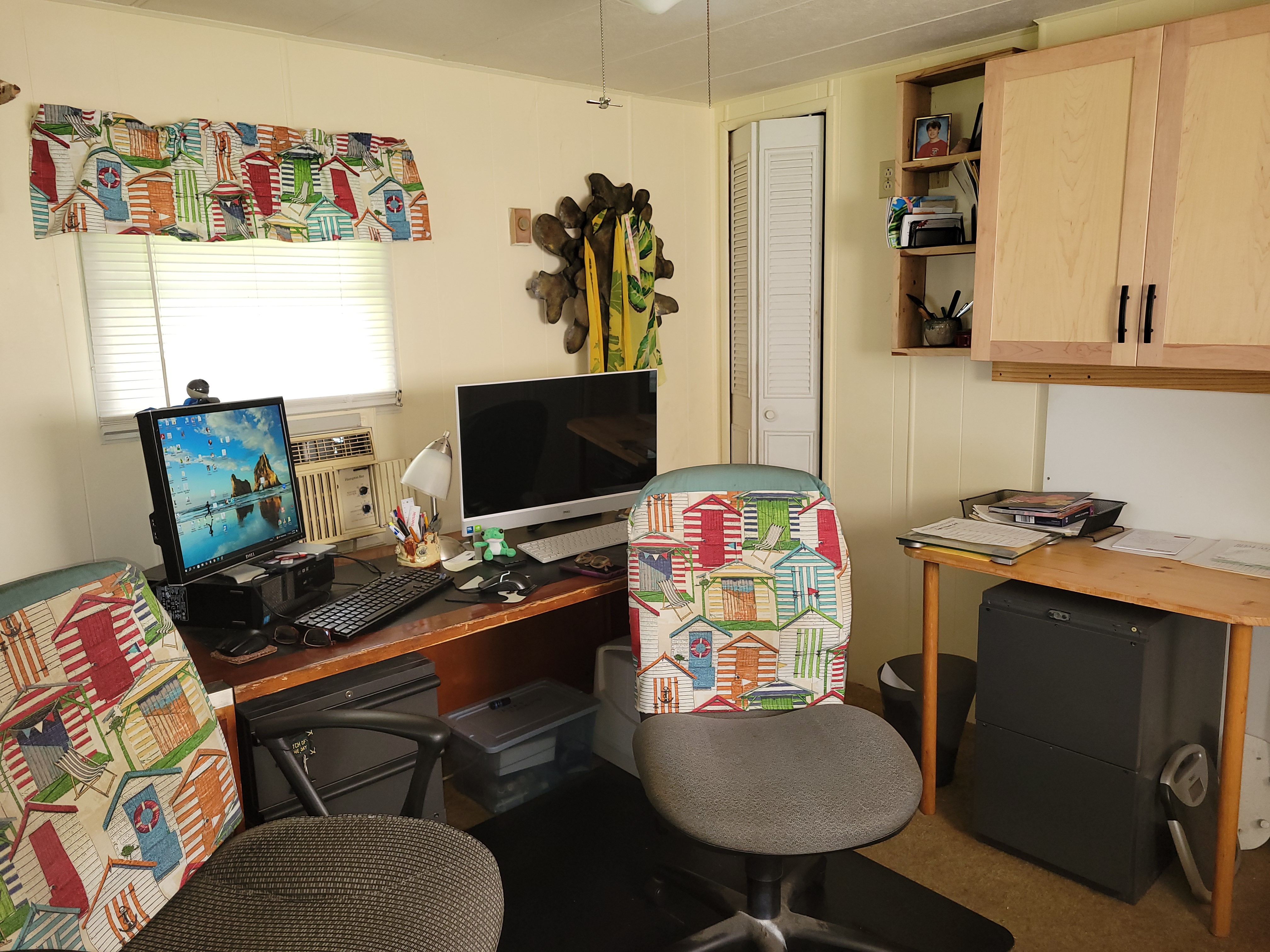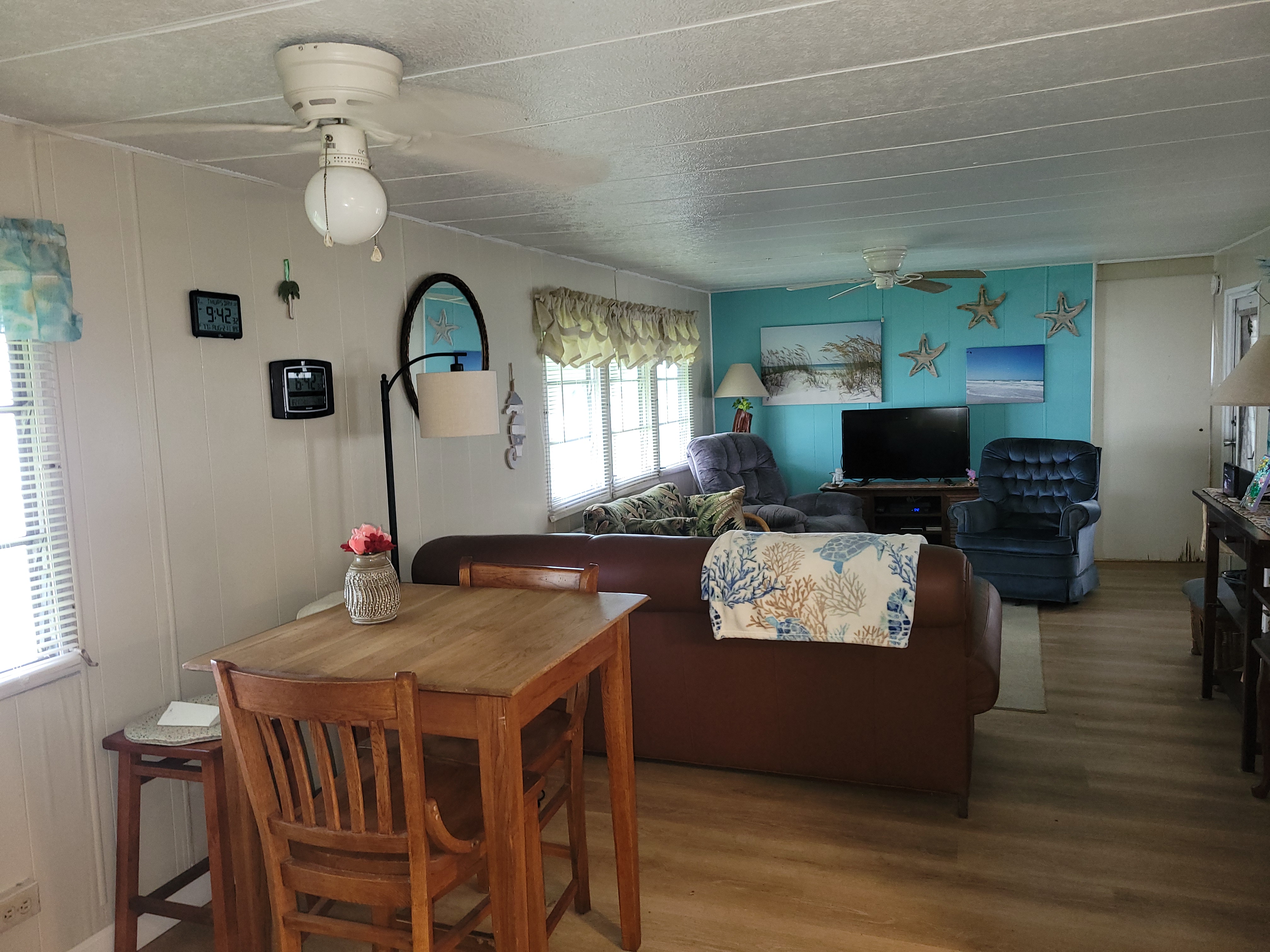 Welcome to your peaceful slice of paradise in a well loved home! This delightful 2-bedroom, 1-bath home is perfect for retirees or the working person seeking comfort with a touch of modern flair. The updated kitchen features, contemporary cabinets and plenty of counter space, ideal for easy meal prep, while the spacious lanai offers a serene spot to sip morning coffee or enjoy evening breezes entertaining family or friends. The added space of the lanai has many potential uses. Bring the tranquil vibes of the shoreline into your home by layering in beach-inspired decor that evokes sun, sand, and sea. With just a few thoughtful touches, your space can feel like a breezy seaside retreat.