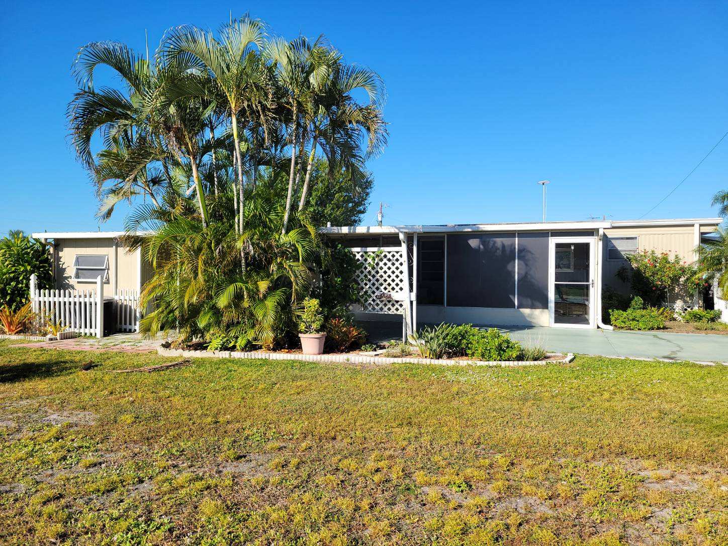 The master bedroom awaits your personal touch with flooring needing to be replaced to suit your style. Updates to the home include some flooring, plumbing, and electrical. Outside, enjoy beautifully landscaped grounds, an extra patio area for entertaining or quiet reflection, and two handy sheds—one with washer/dryer and a laundry tub for added convenience. Lots of storage space for all those little extras! Whether you’re downsizing or simply embracing the Florida lifestyle, this cozy retreat offers the perfect blend of charm and practicality.