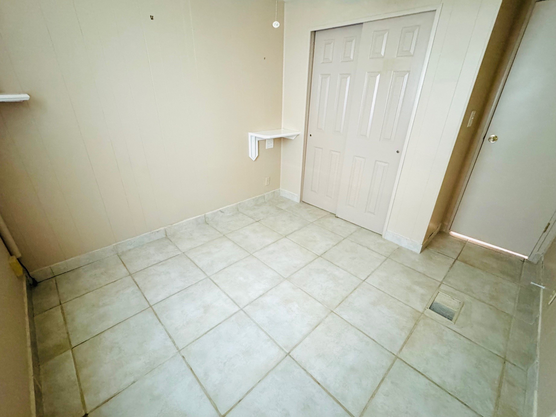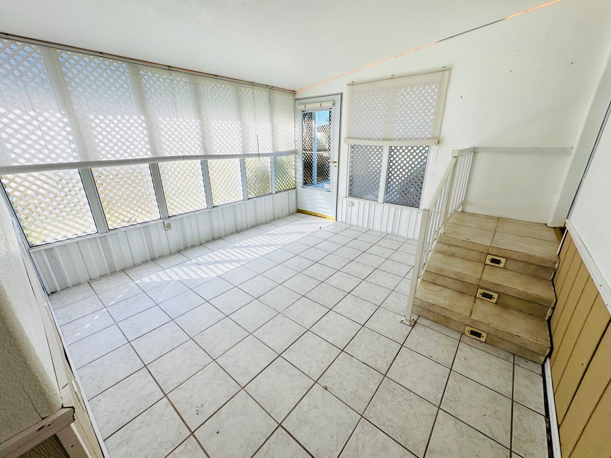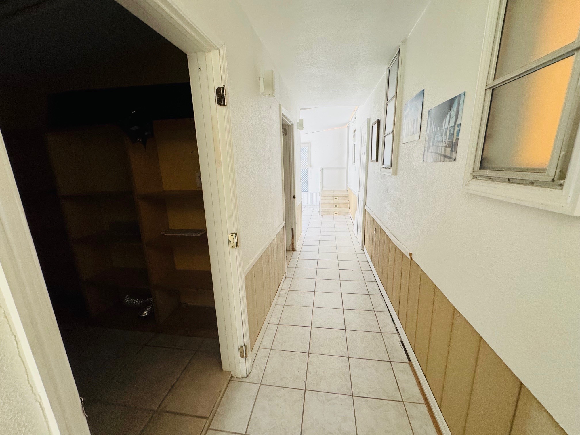 Once you enter the kitchen there’s a side door that leads out to the Florida room. That Florida room has a long corridor that leads you to a storage spaces and Laundry room with lots of shelving at the end of the corridor is a storm door that will take you outside to the back area of your home.