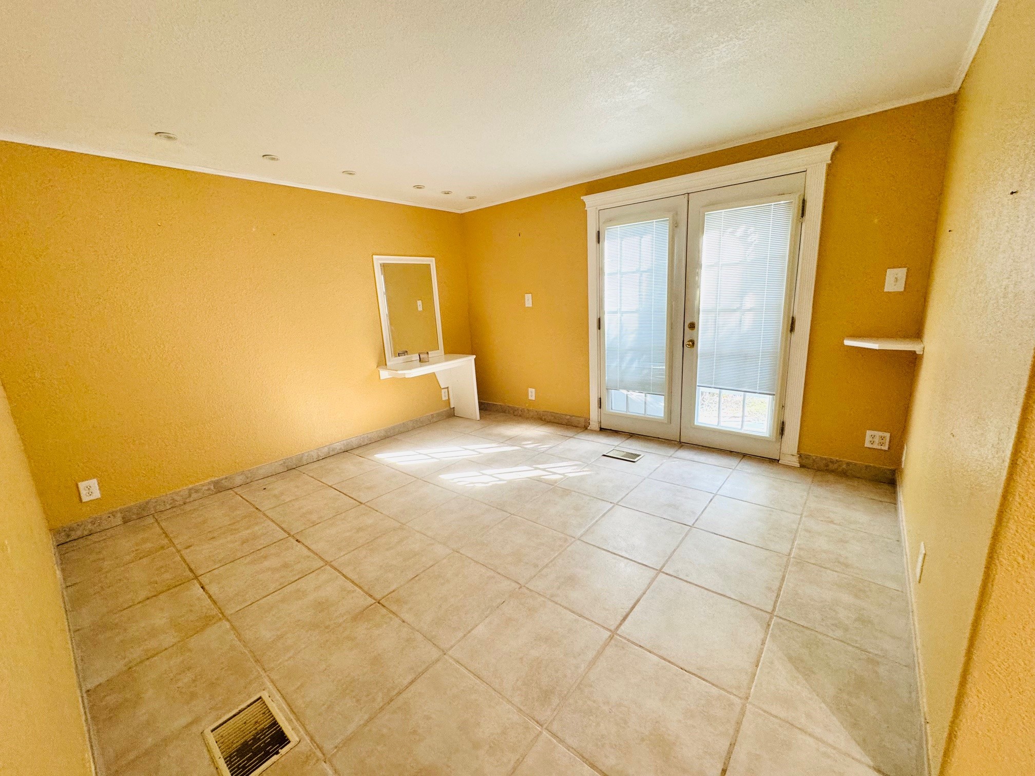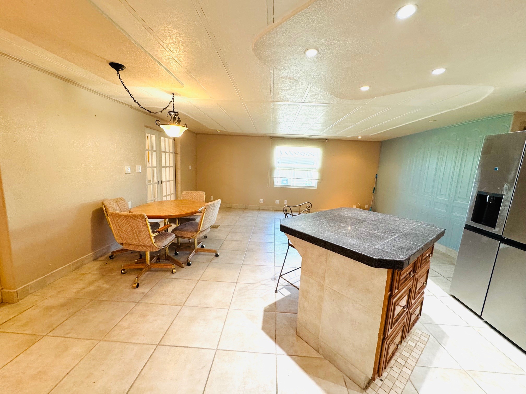 As you step in to this home you wank right in to the large front Lanai area. The Lanai is so charming, it has 2 Pocket French doors. They are just perfect, you can slide them open and tuck them away when you have family and friends over for entertaining. That way you can keep this space open for entertaining without the doors being in the way.