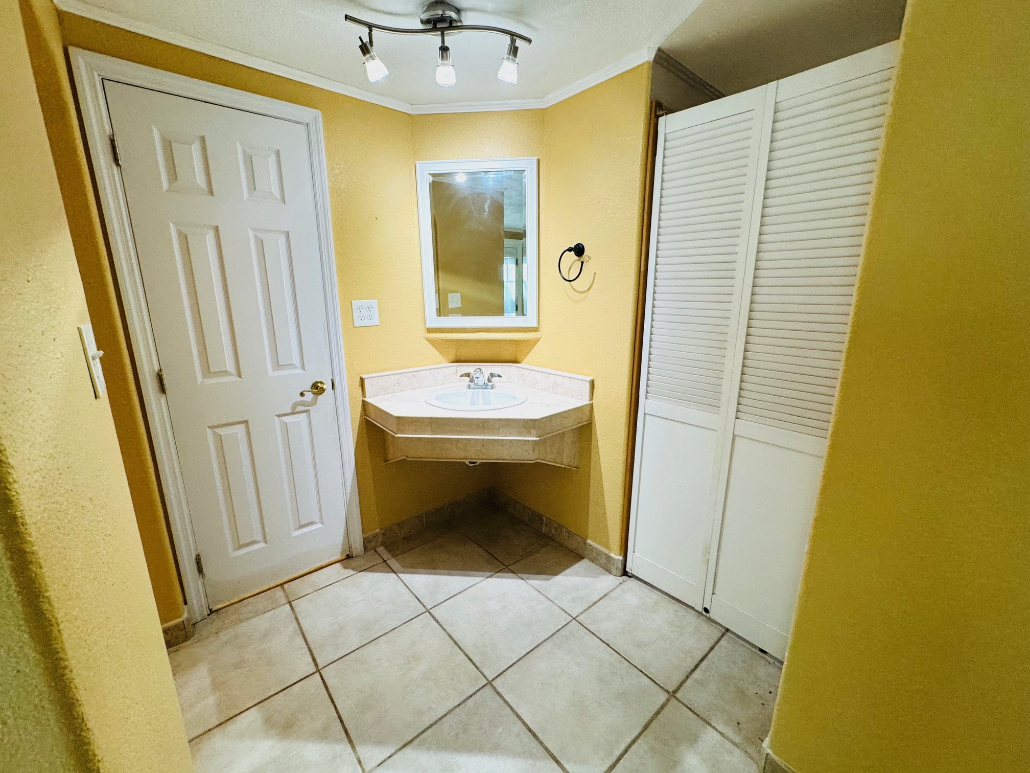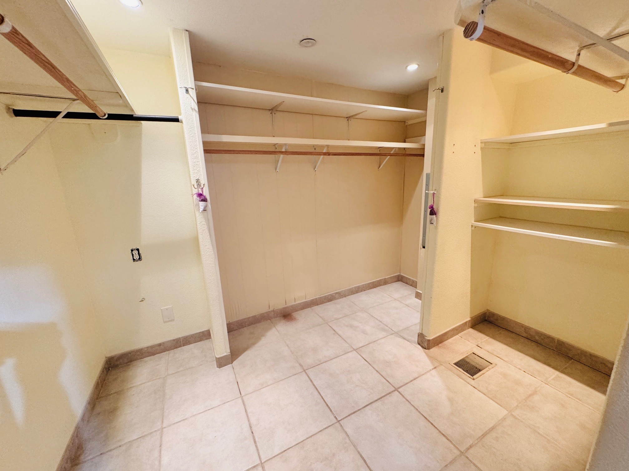 Back inside, if you pass the kitchen then your next right is the main bathroom then continue on straight until you get to double doors. Once you enter those doors you are in the Master Bedroom. Straight ahead is a Grand, I mean grand Walk-in Closet. The closet is big enough to be a bedroom all on its own! To the rt of the closet is the master bathroom.