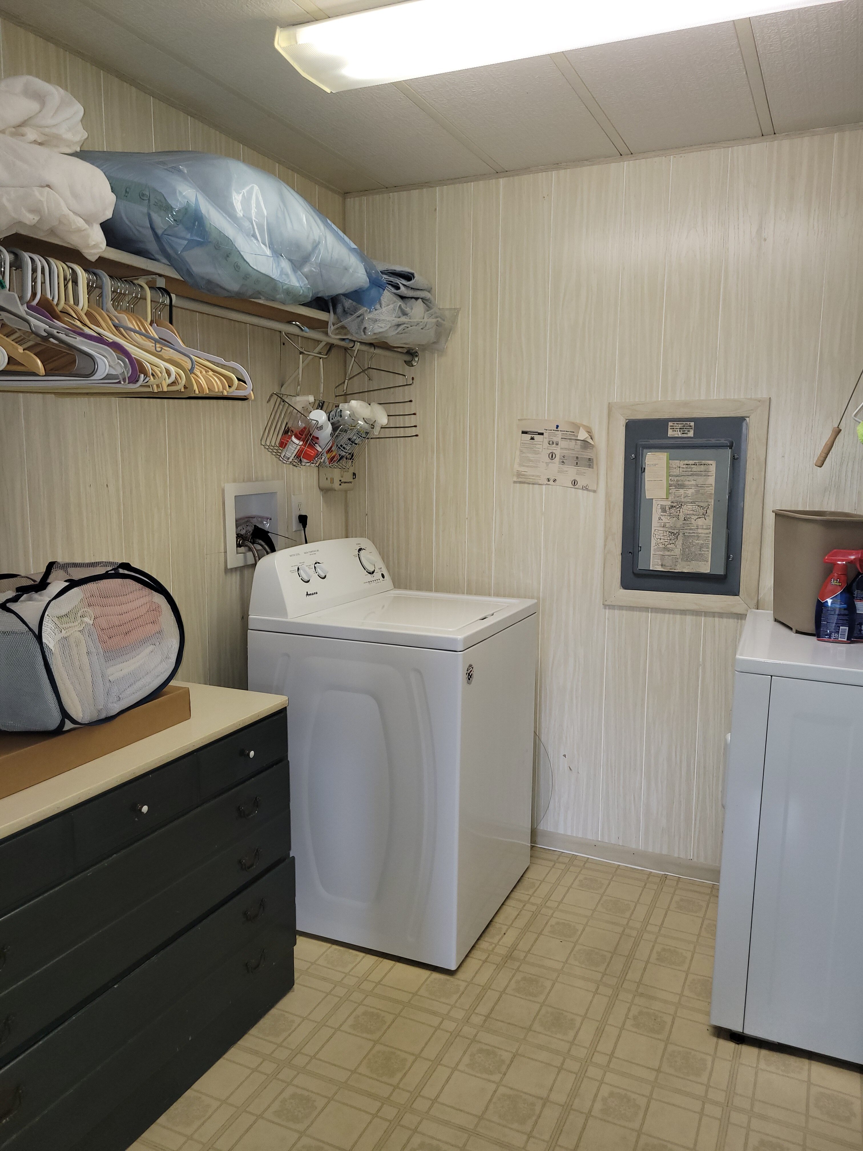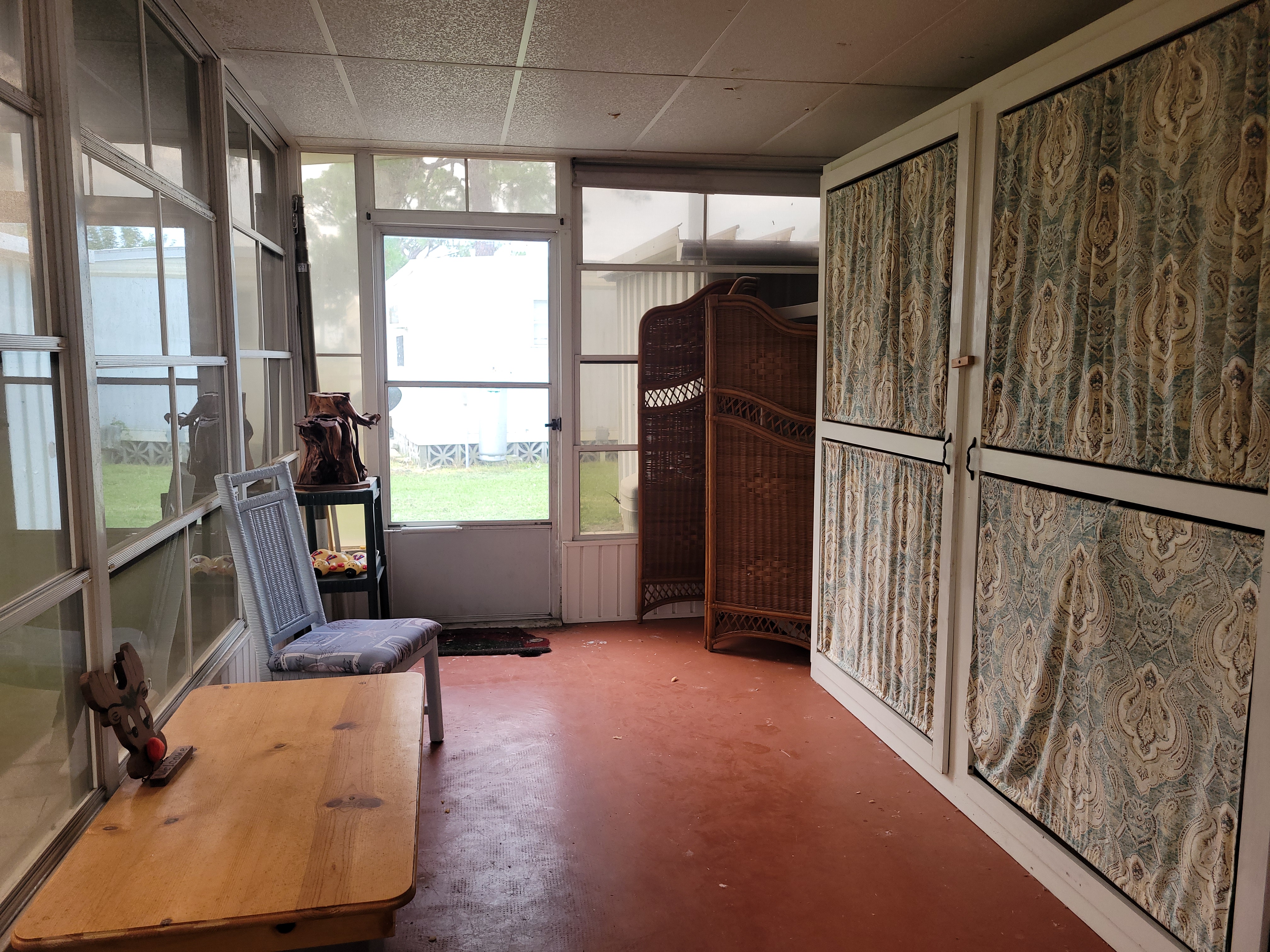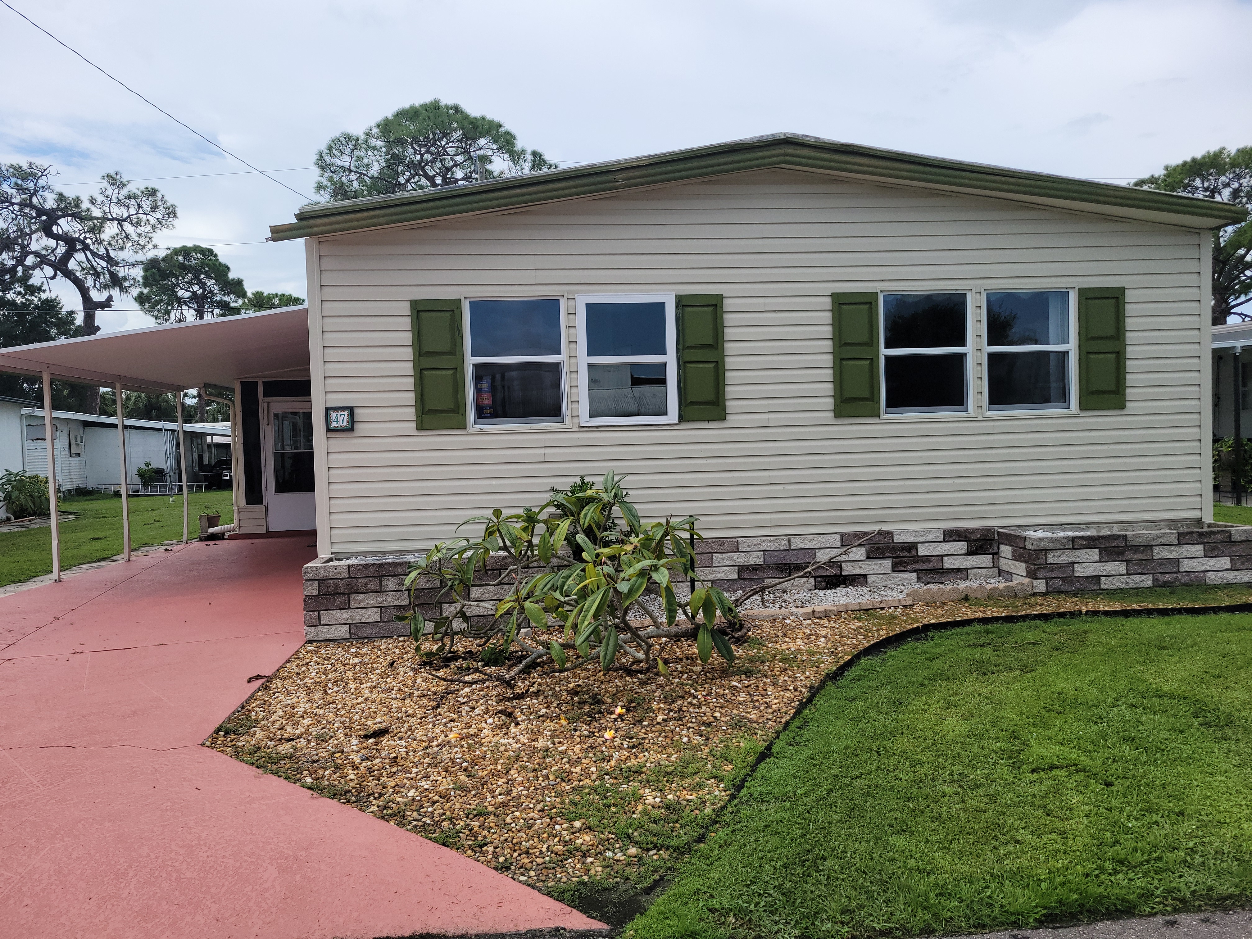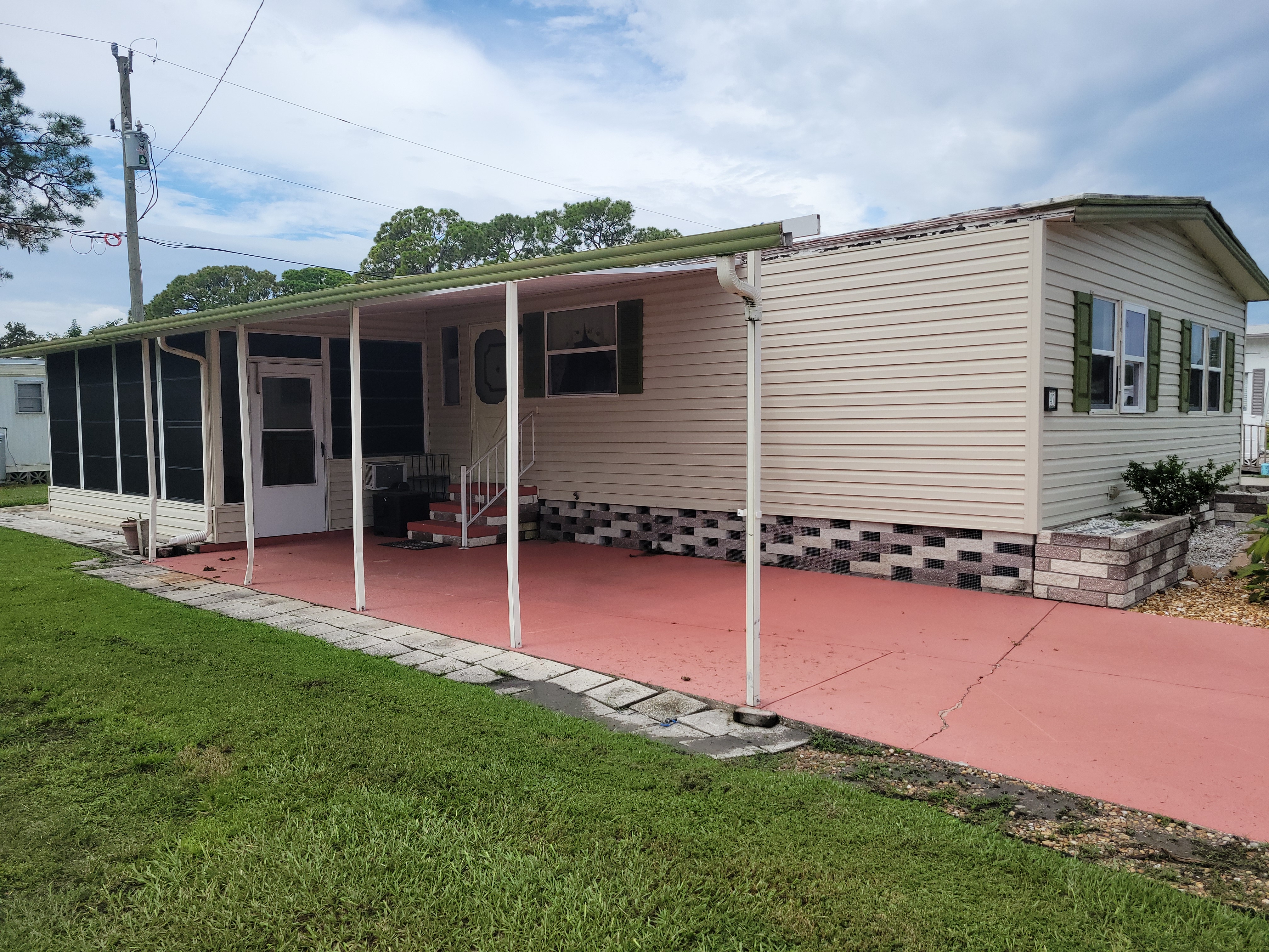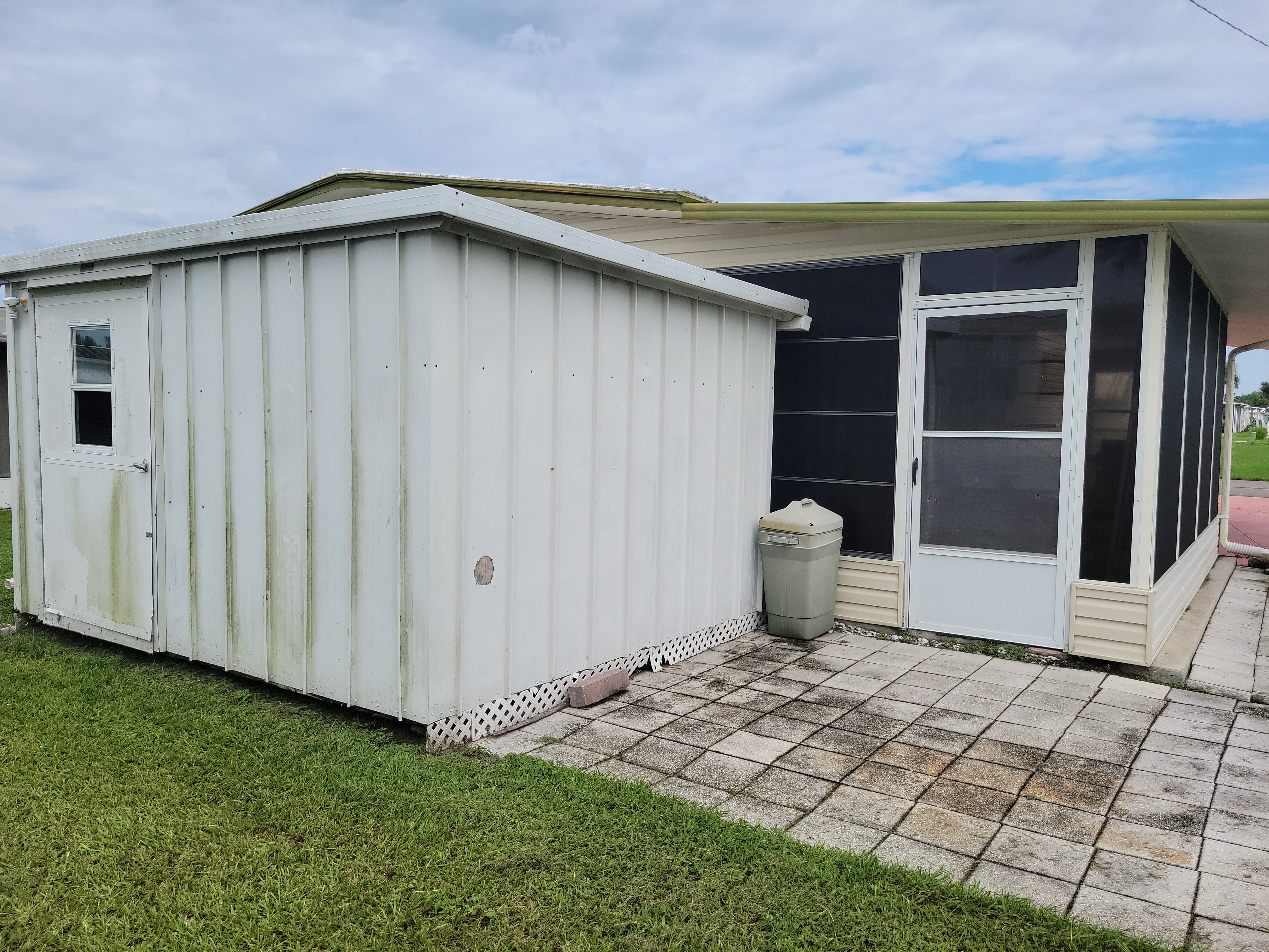 Carport; Ceiling Fan(s); Central A/C; Community Clubhouse; Community Pool; Community Storage; Dryer; Florida Room; Hot Water Heater; Laundry Area in Home; Partly Furnished; Oven/Range; Refrigerator; Shed; Smoke Detectors; Storm Shutters; Vinyl Sheet Flooring; Walk-In Closet(s); Washer;Approximate Size