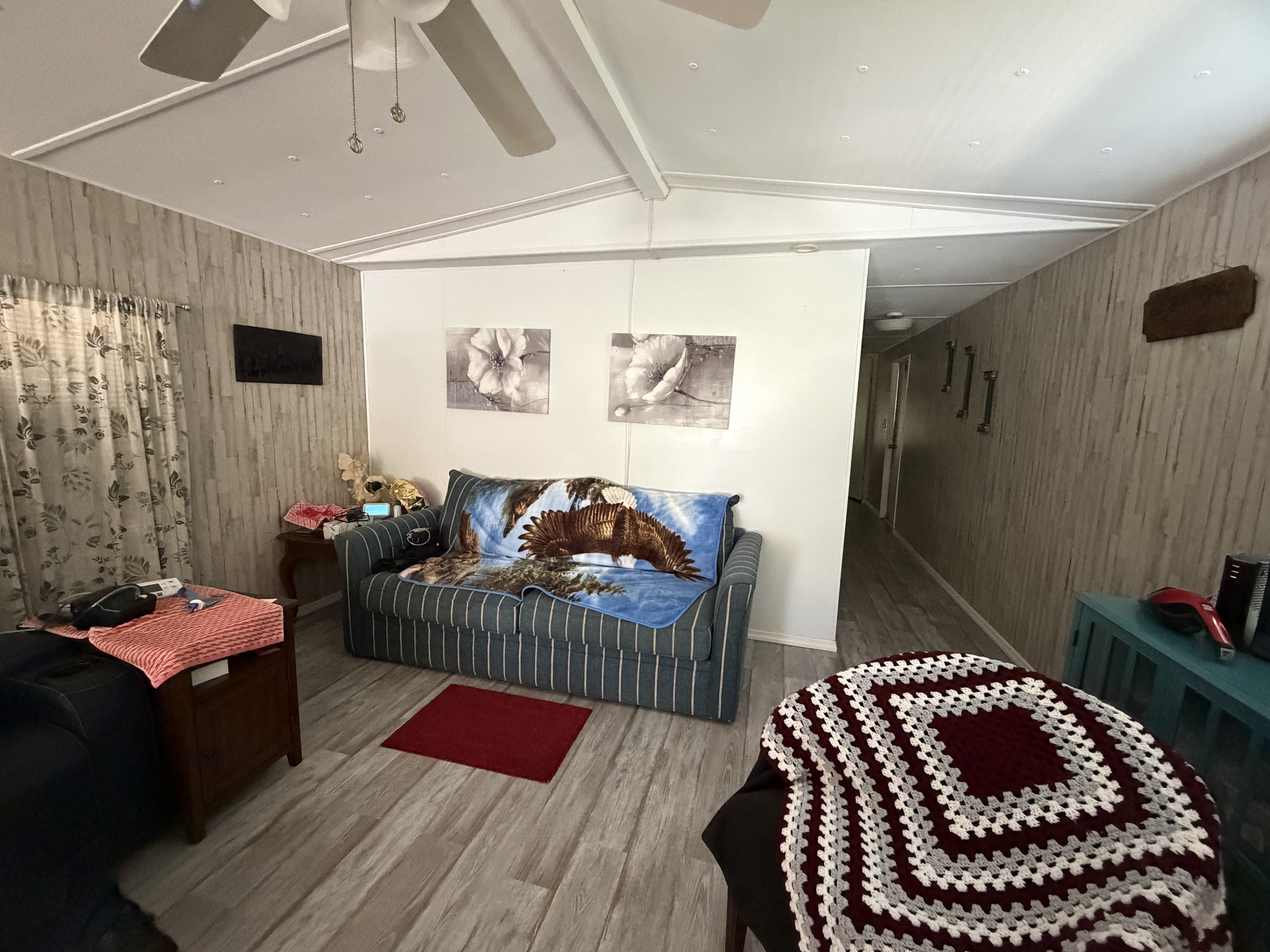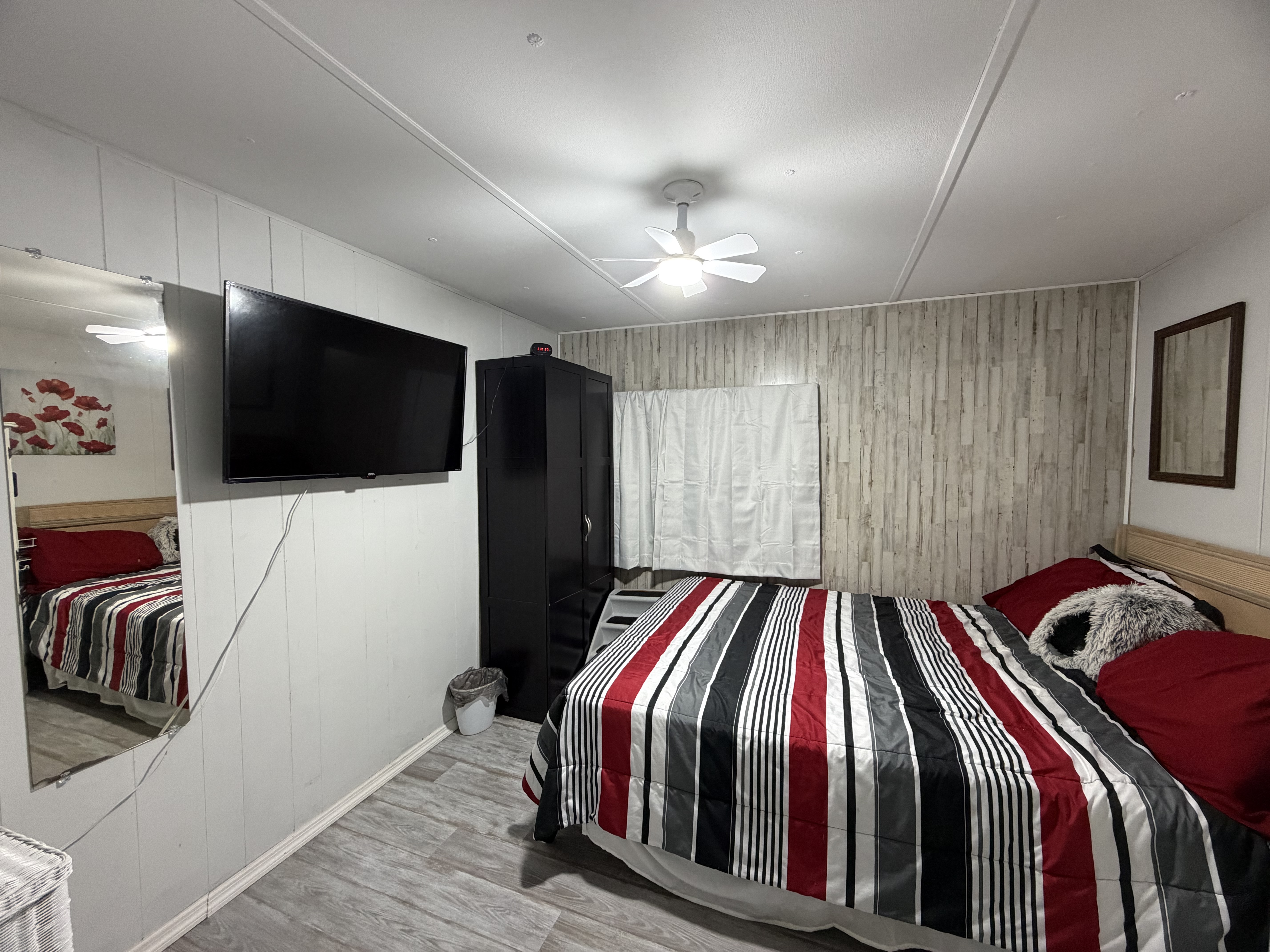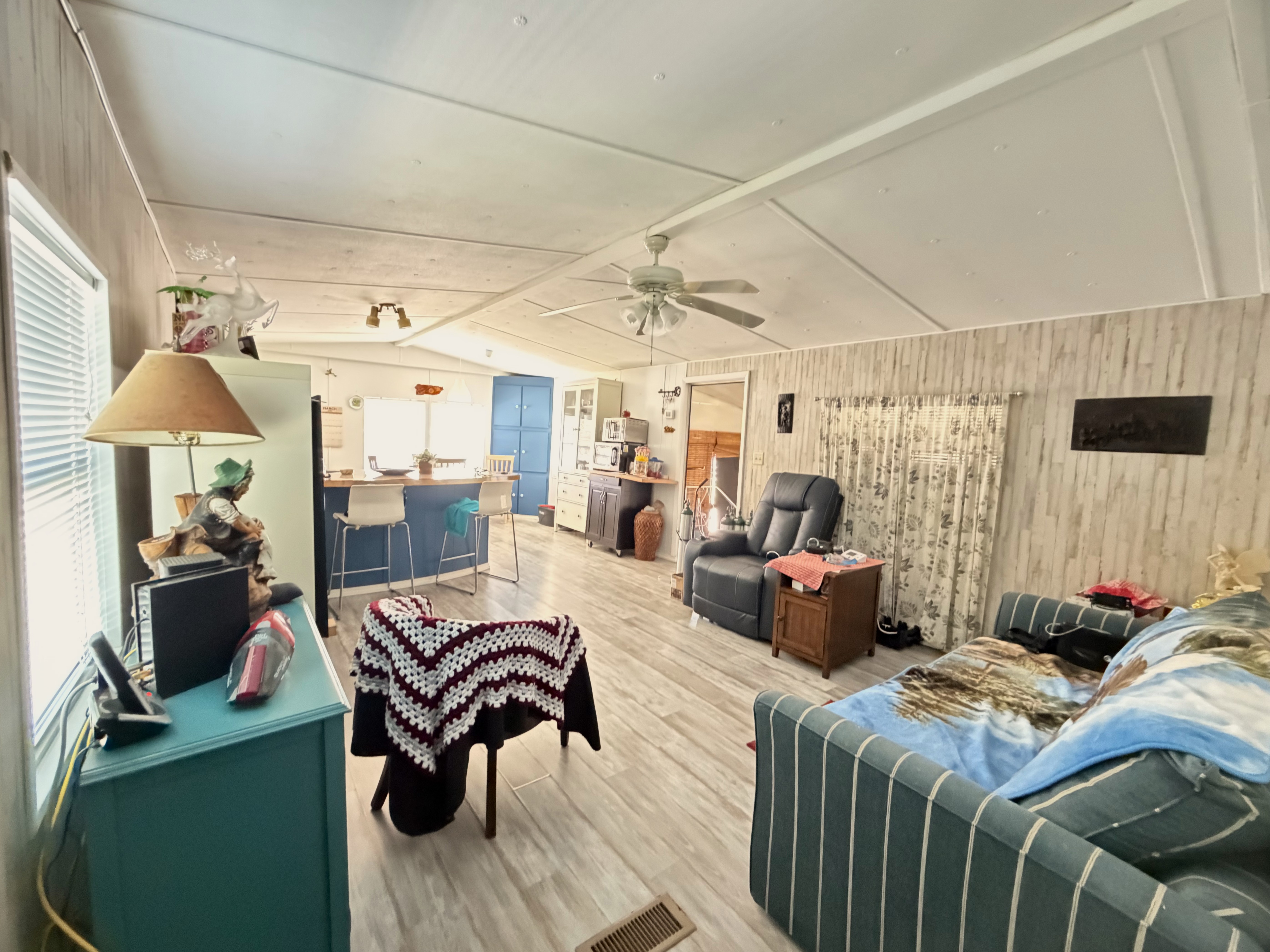 This home features 2 bedrooms and 1 bathroom with an open-concept layout. Most of the furniture will stay with the home. It also includes a washer and dryer conveniently located in the laundry room, so you won’t have to go far to do laundry.