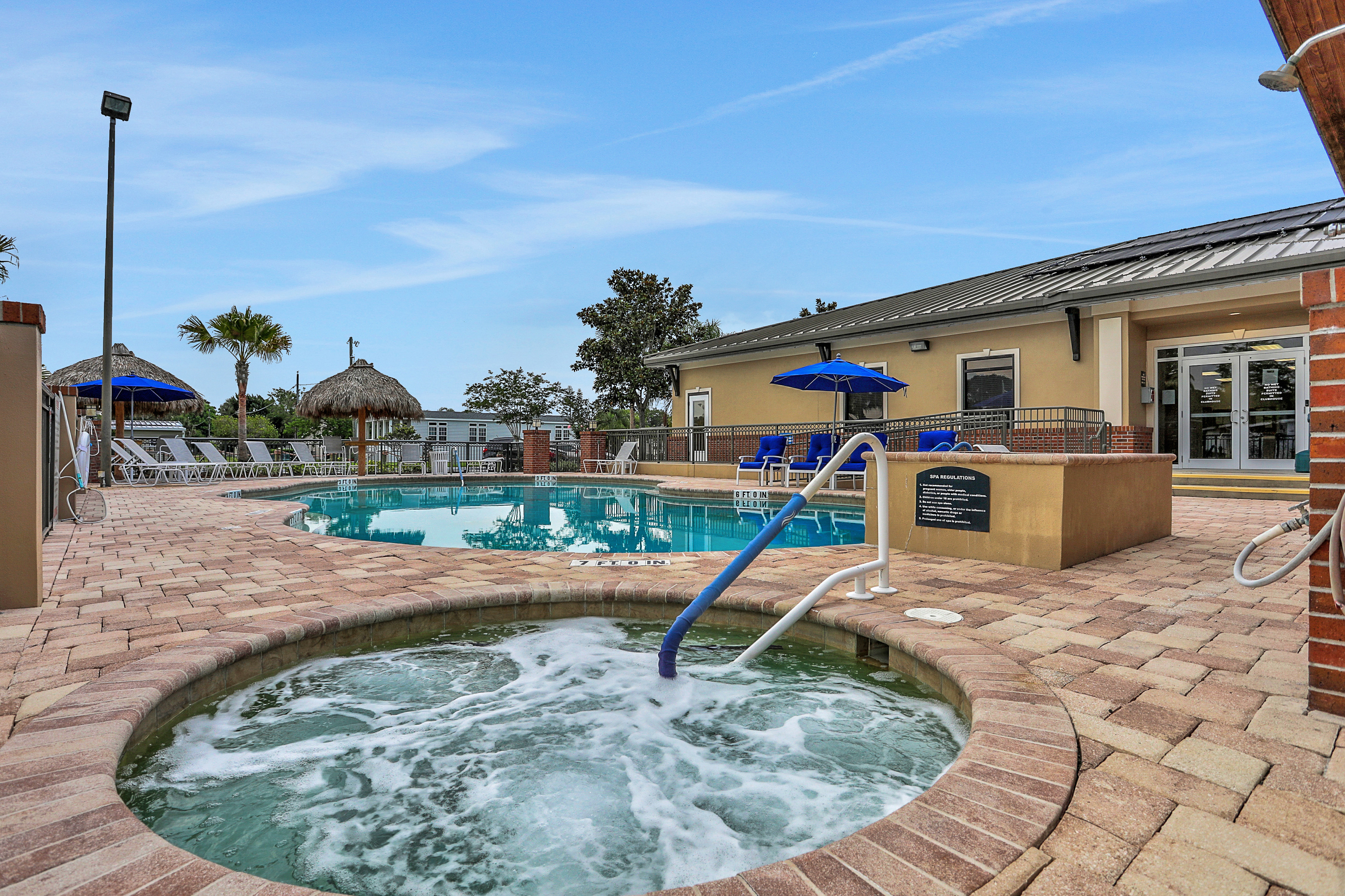 Arts and Crafts; Billiards; Card Room; Clubhouse; Corn Hole; Exercise Room; Hot Tub; Library; Pet Friendly; Planned Activities; Pool - Heated; Recycling; Security Cameras; Social Club; Spa; WiFiLot Rent Includes