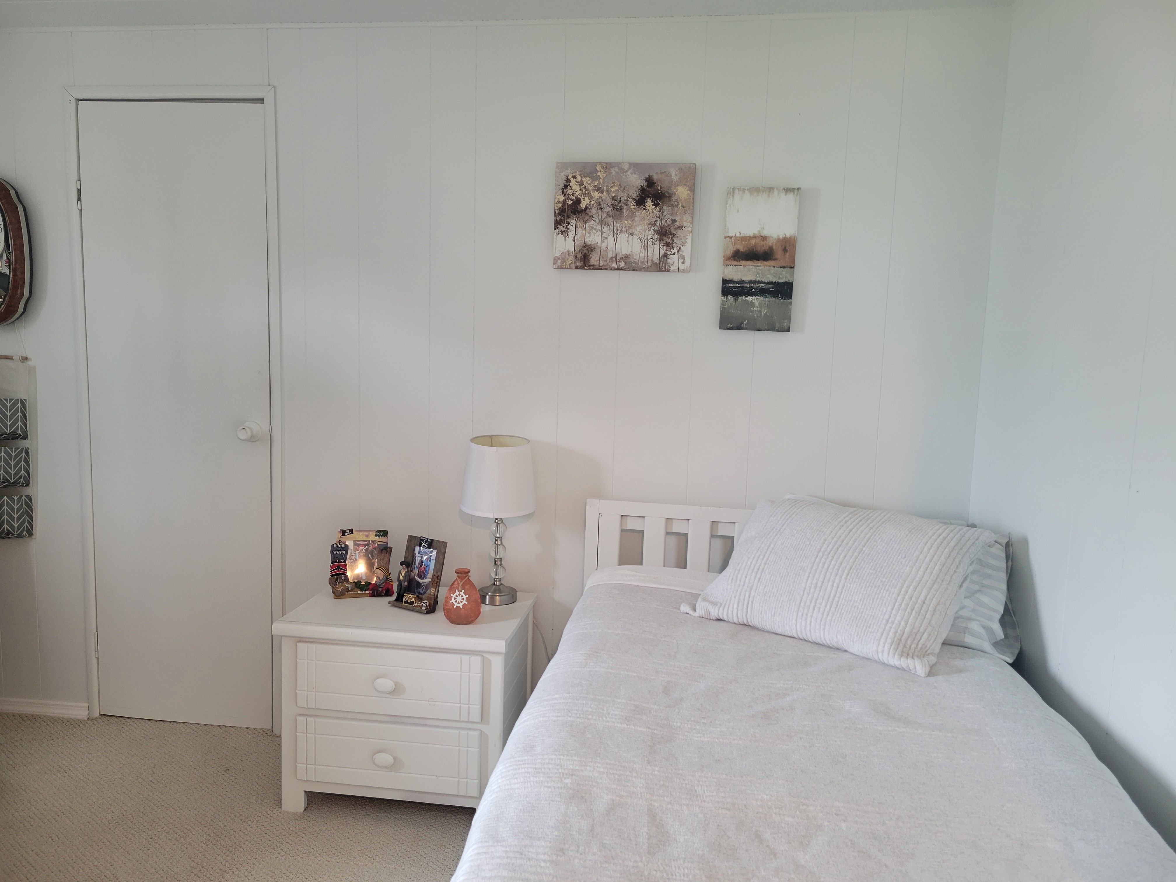 The master bedroom is a serene retreat with a private en-suite bath and a walk-in closet. A sizable second bedroom also boasts a walk-in closet and is conveniently located just steps from the second bathroom, ideal for guests or family.