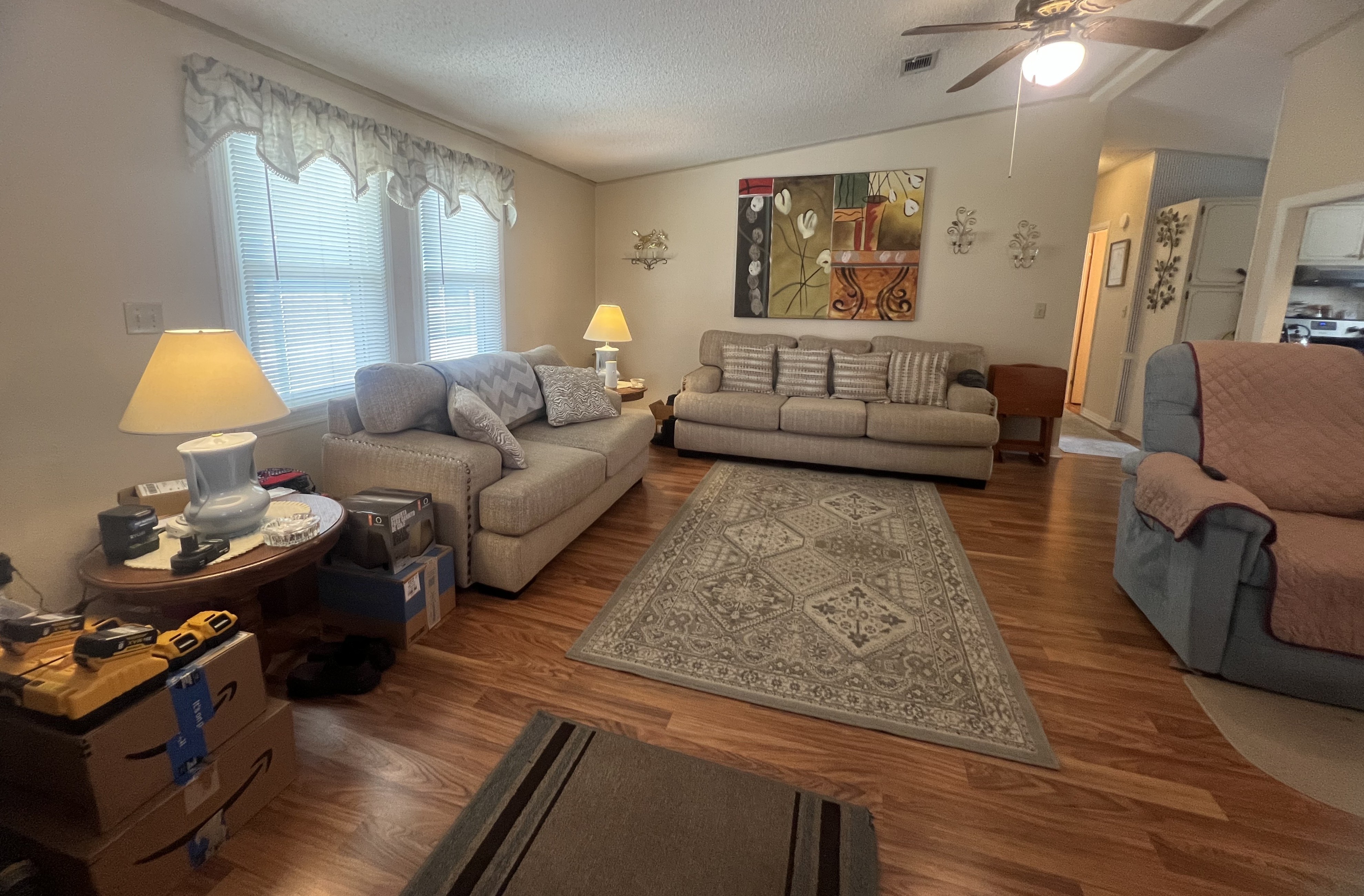Holiday is an Active 55+ Adult community – the monthly Fee Package will include Land-lease, Water, Sewer, Trash, Property Taxes, Bulk Community Telecommunication Package (Spectrum Cable/Internet), and Use of Resort style Amenities for $1227.42. It is pet friendly (up to 2 pets each w/Breed restrictions), gated(nightly) community.