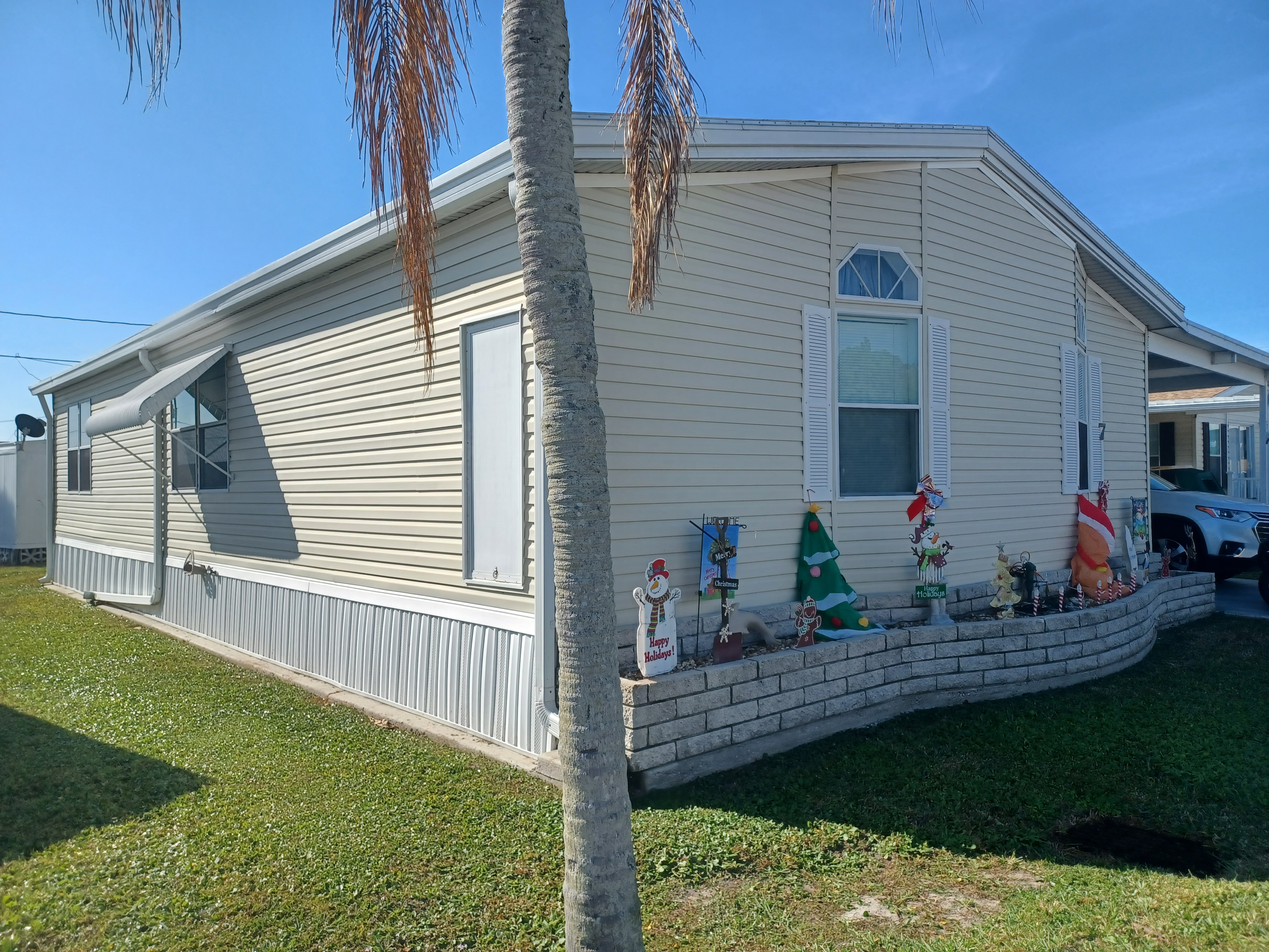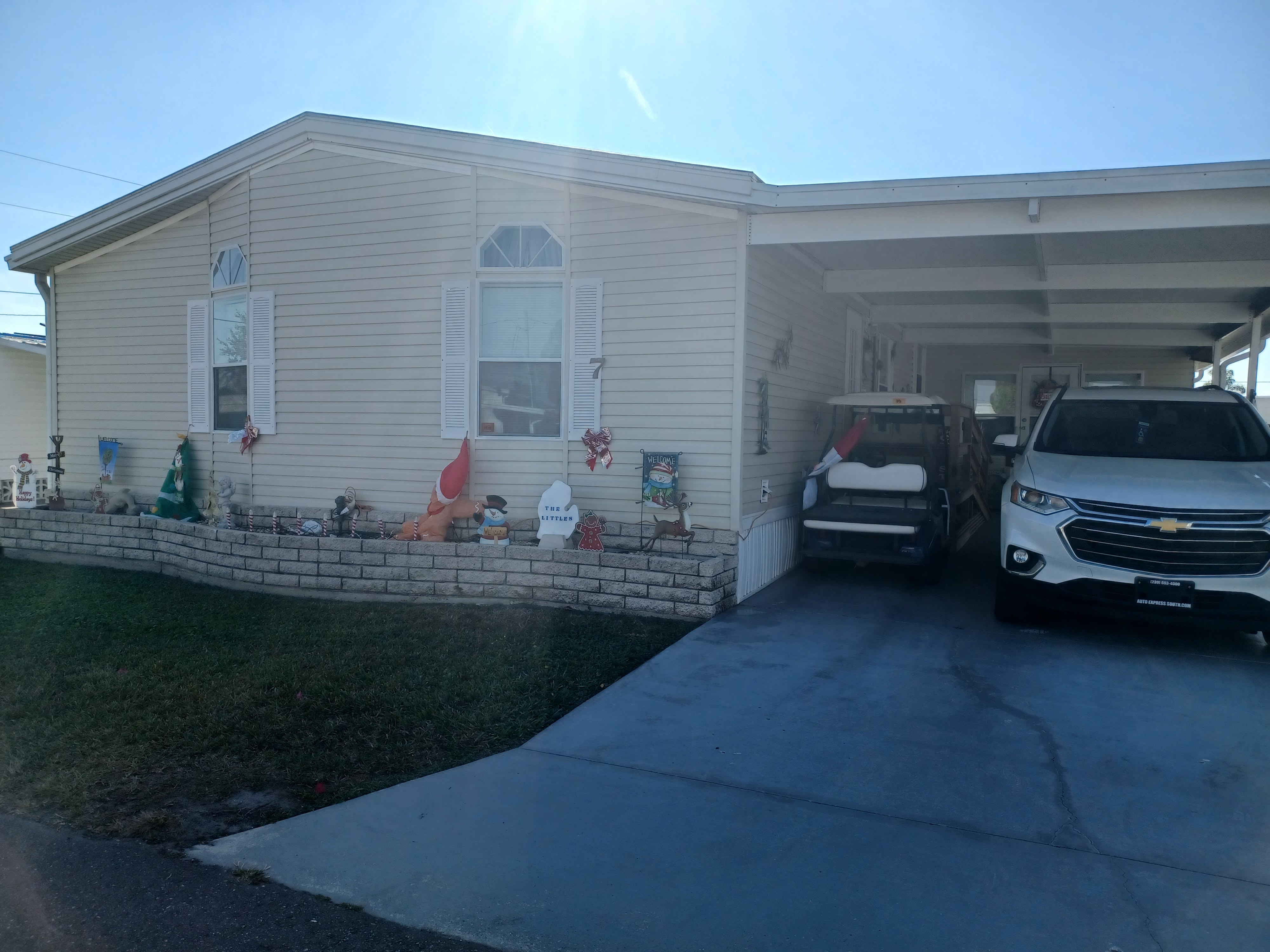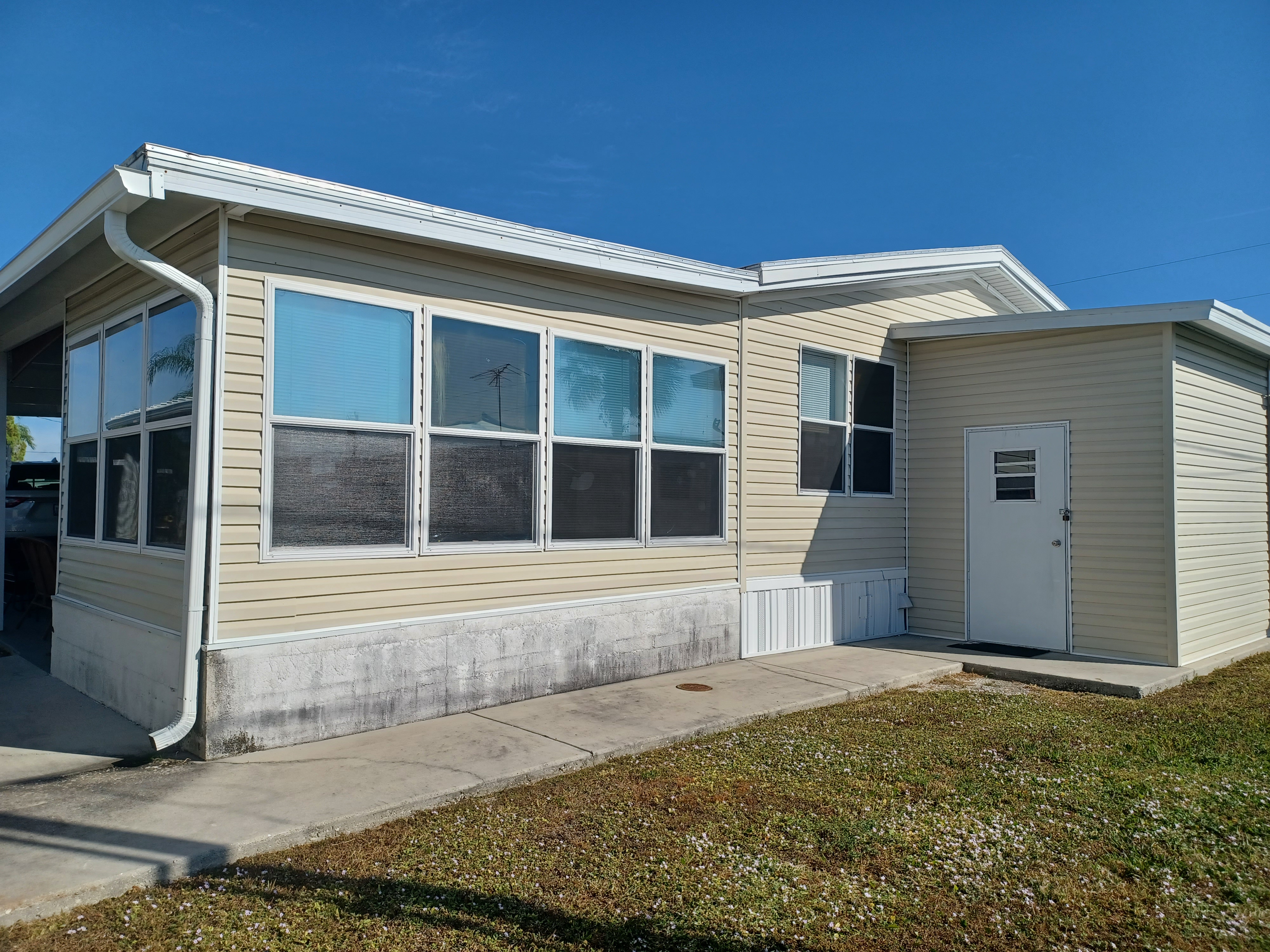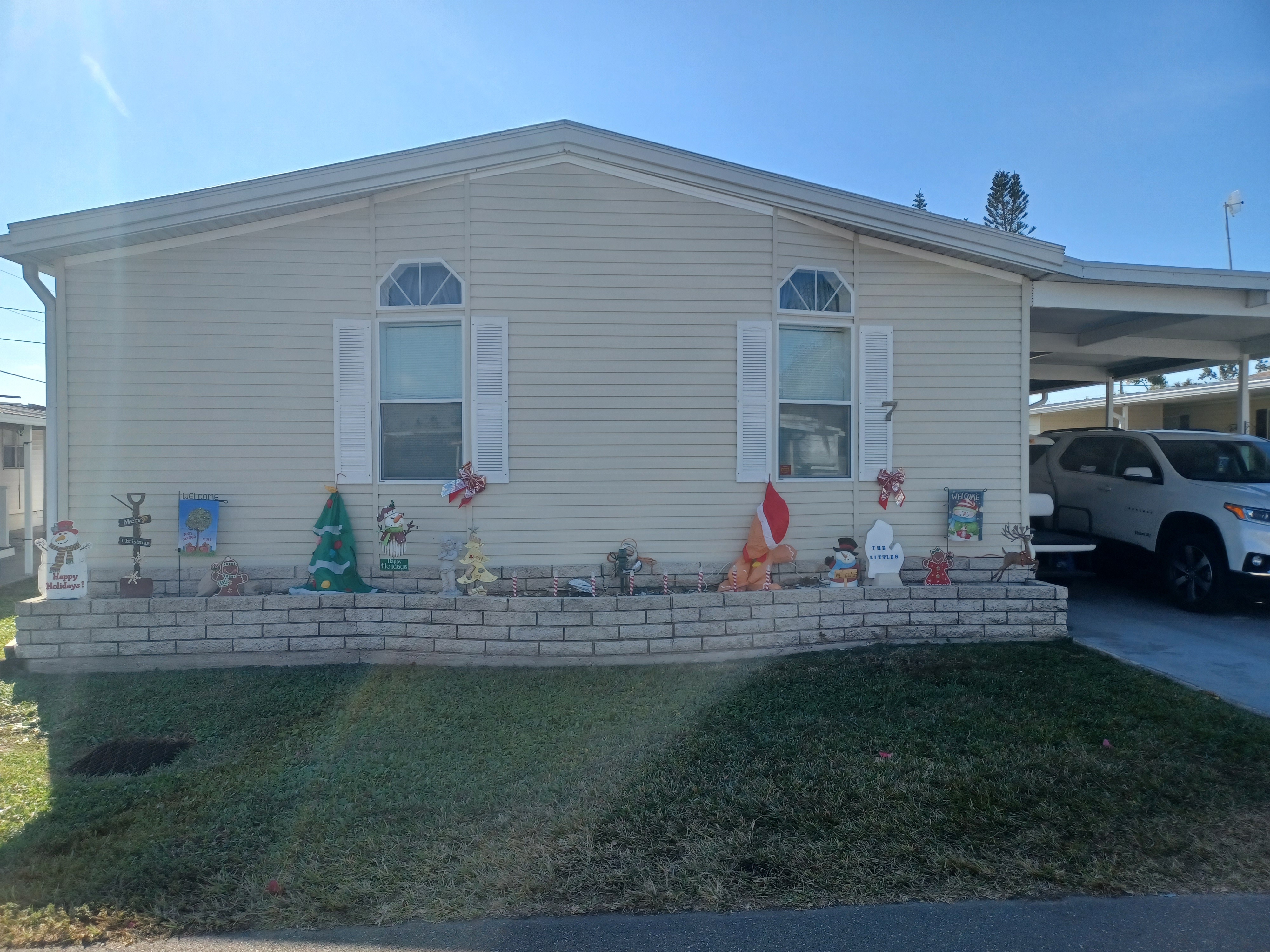 Carpet; Carport; Cathedral Ceiling; Ceiling Fan(s); Central A/C; Community Clubhouse; Community Pool; Community Storage; Dishwasher; Dryer; Florida Room; Furnished; Gated Community; Hot Water Heater; Lanai; Laundry Area in Home; Metal Roof; Microwave; Non-Smoking Owner; Parking - 2 Car; Pet Friendly under 45 lbs; Oven/Range; Refrigerator; Roof Over; Shed; Smoke Detectors; Tub/Shower Combo; Vinyl Plank Flooring; Vinyl Siding; Walk-In Closet(s); Walk-In Shower; Washer; Window Treatments;Approximate Size