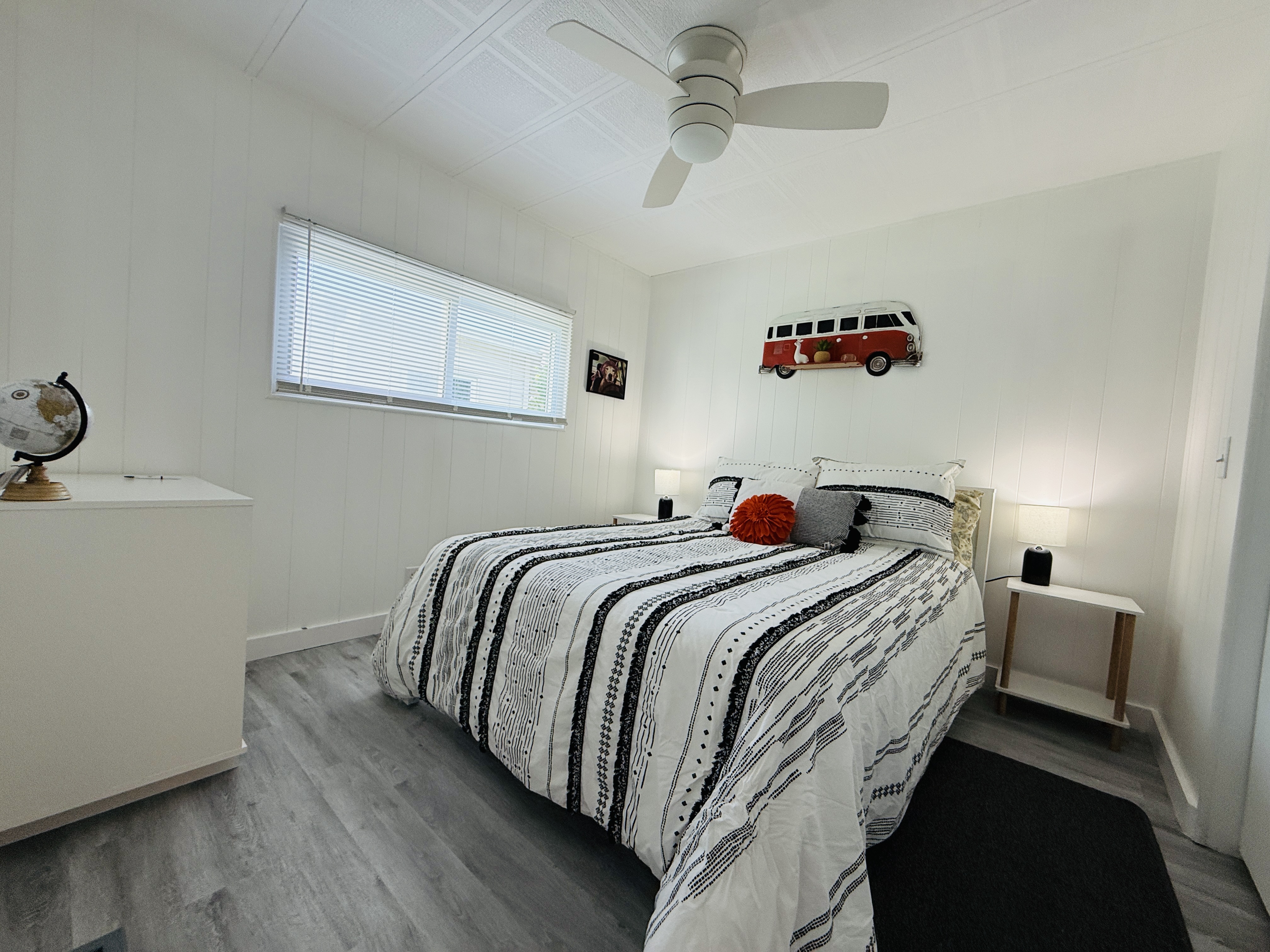 Aluminum Siding; Carport; Ceiling Fan(s); Central A/C; Community Clubhouse; Community Pool; Covered Porch; Dishwasher; Dryer; Enclosed Porch; Florida Room; Garbage Disposal; Gated Community; Hot Water Heater; Microwave; Non-Smoking Owner; Parking - 2 Car; Pet Friendly under 45 lbs; Oven/Range; Refrigerator; Roof Over; Rubber Roof; Shed; Smoke Detectors; Stainless Steel Appliances; Tub/Shower Combo; Vinyl Plank Flooring; Walk-In Closet(s); Walk-In Shower; Washer; Window Treatments;