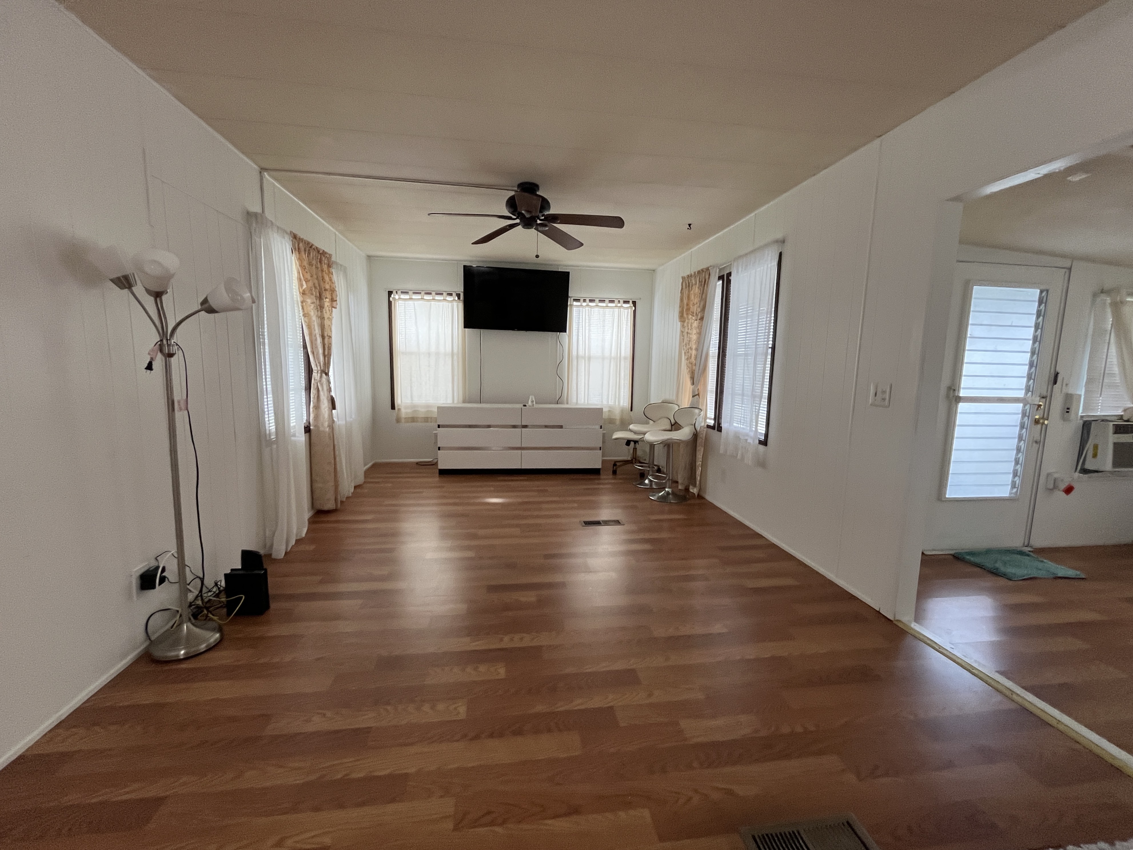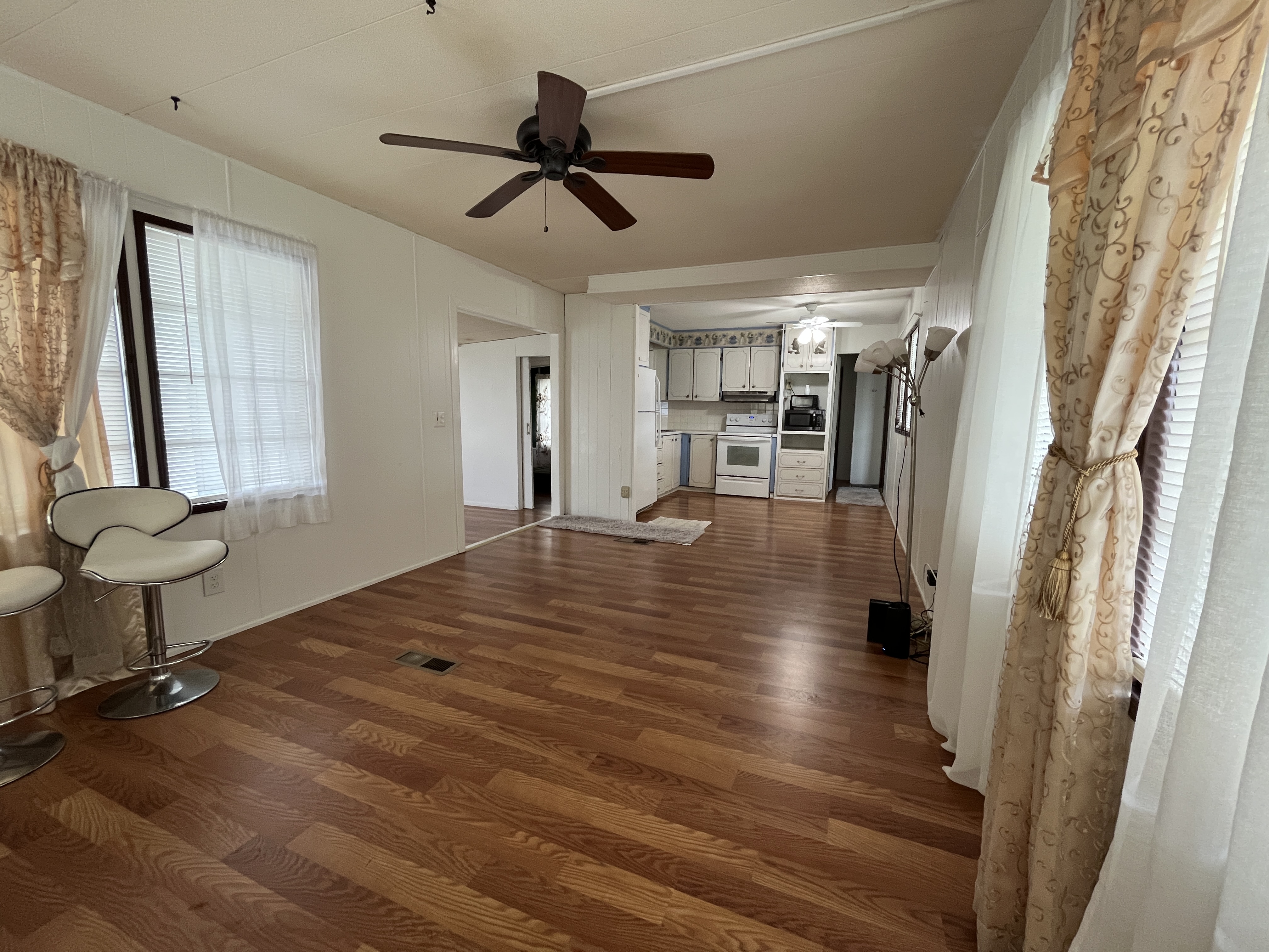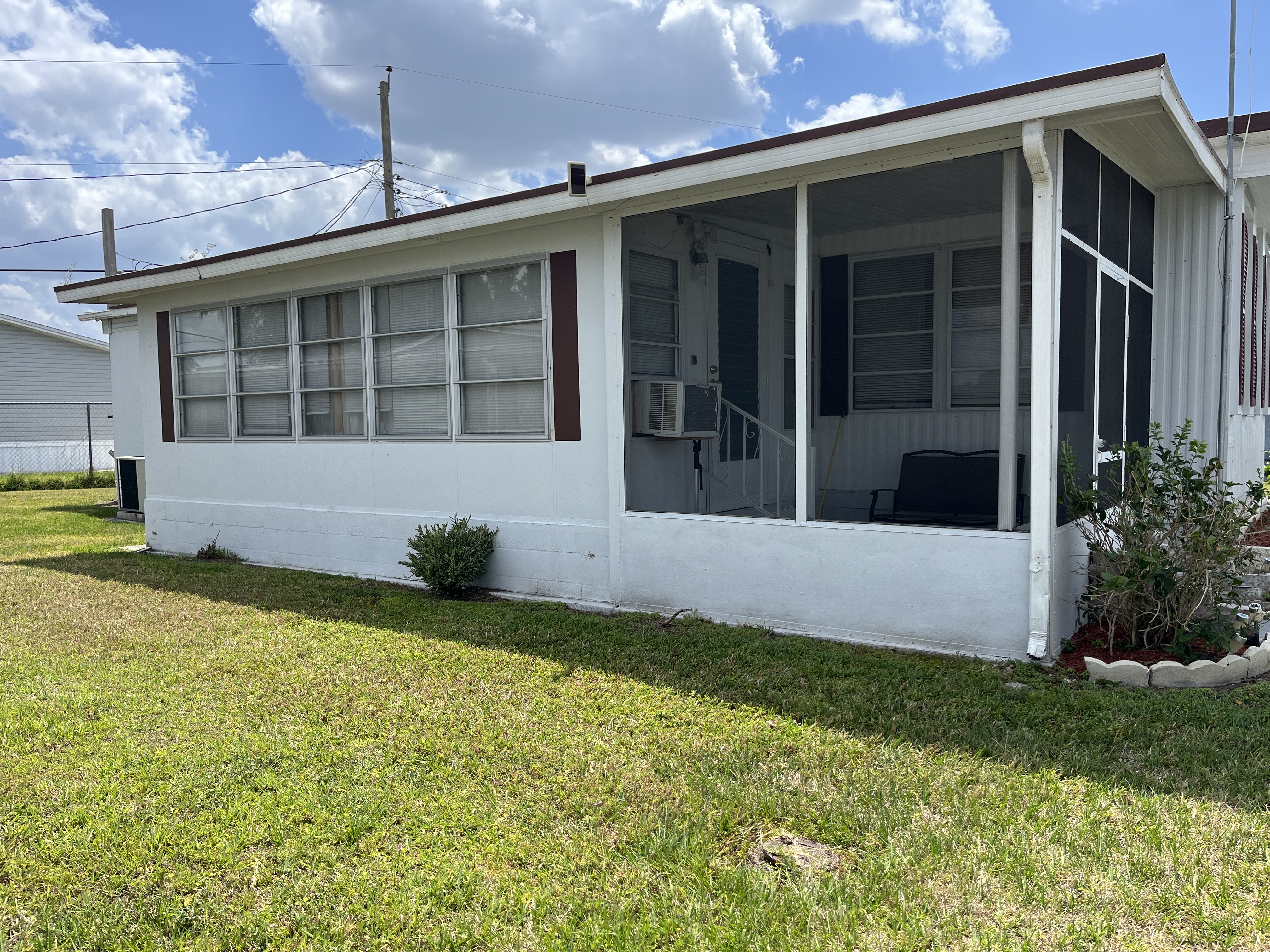 This home, located in a 55+ community, has a large open floorplan to living, dining and kitchen. If you need additional space there is another large room adjacent for extra entertaining needs, home office or a special reading or puzzle area. This 2 bedroom 1 bath has some updates and simply charming. Washer and Dryer are located inside the utility which is enclosed so you don’t have to go outside to access it. Call to schedule your showing today! Twin Palms is an Active 55+ Adult community – the monthly Fee Package will include: Land-lease, Water, Sewer, Trash, Property Taxes, Cable/Internet, and Use of Resort style Amenities for $975.00. Twin Palms is pet friendly.. Amenities include a beautiful clubhouse with kitchen, darts, library, heated swimming pool, shuffleboard courts, pickleball courts, gaming area, dog park and a laundry facility. Also available at our sister community right next door is Mini Putt-Putt. Twin Palms is a seasonally active park and is called by our residents as, ‘The Place To Be’.