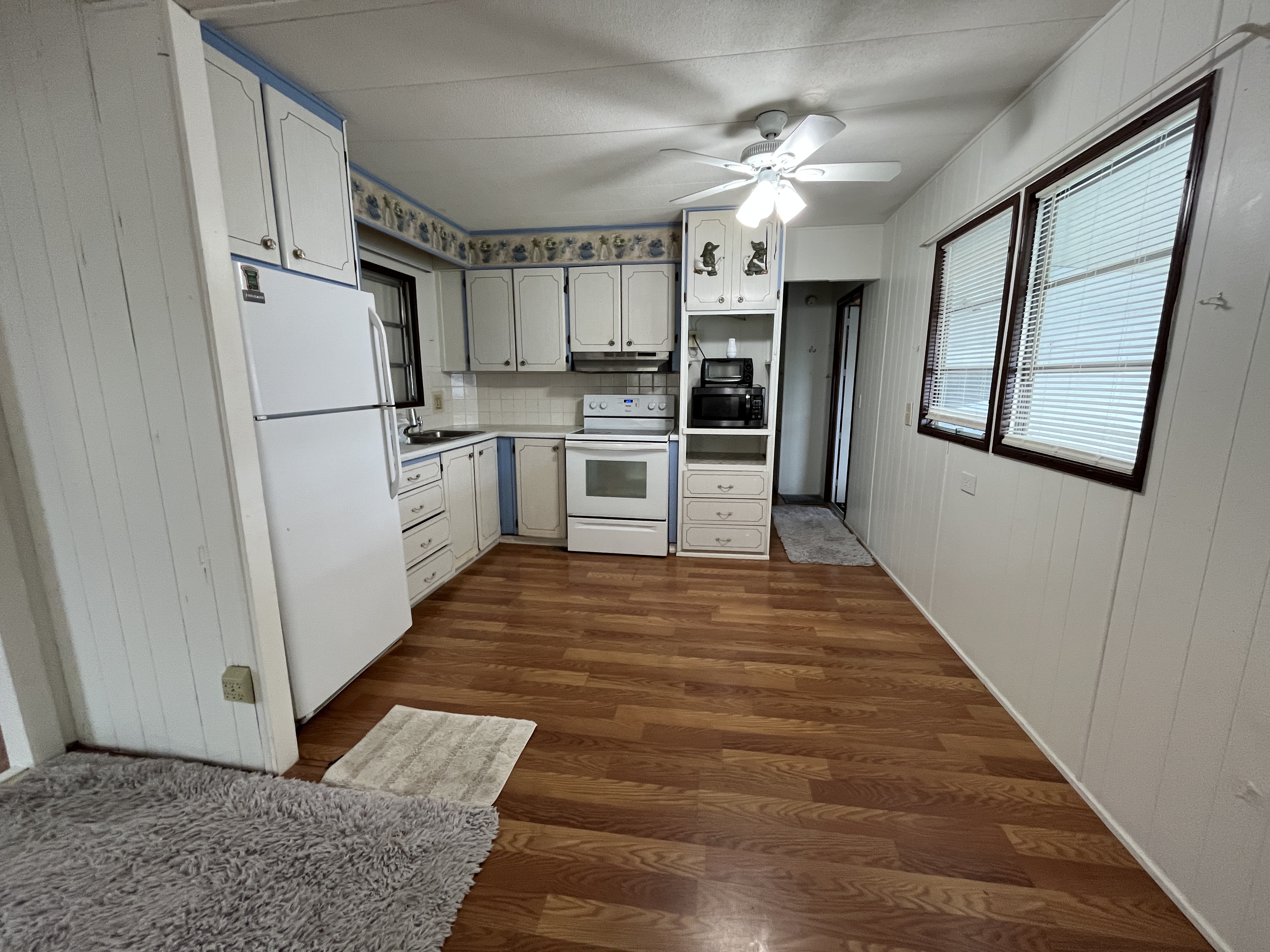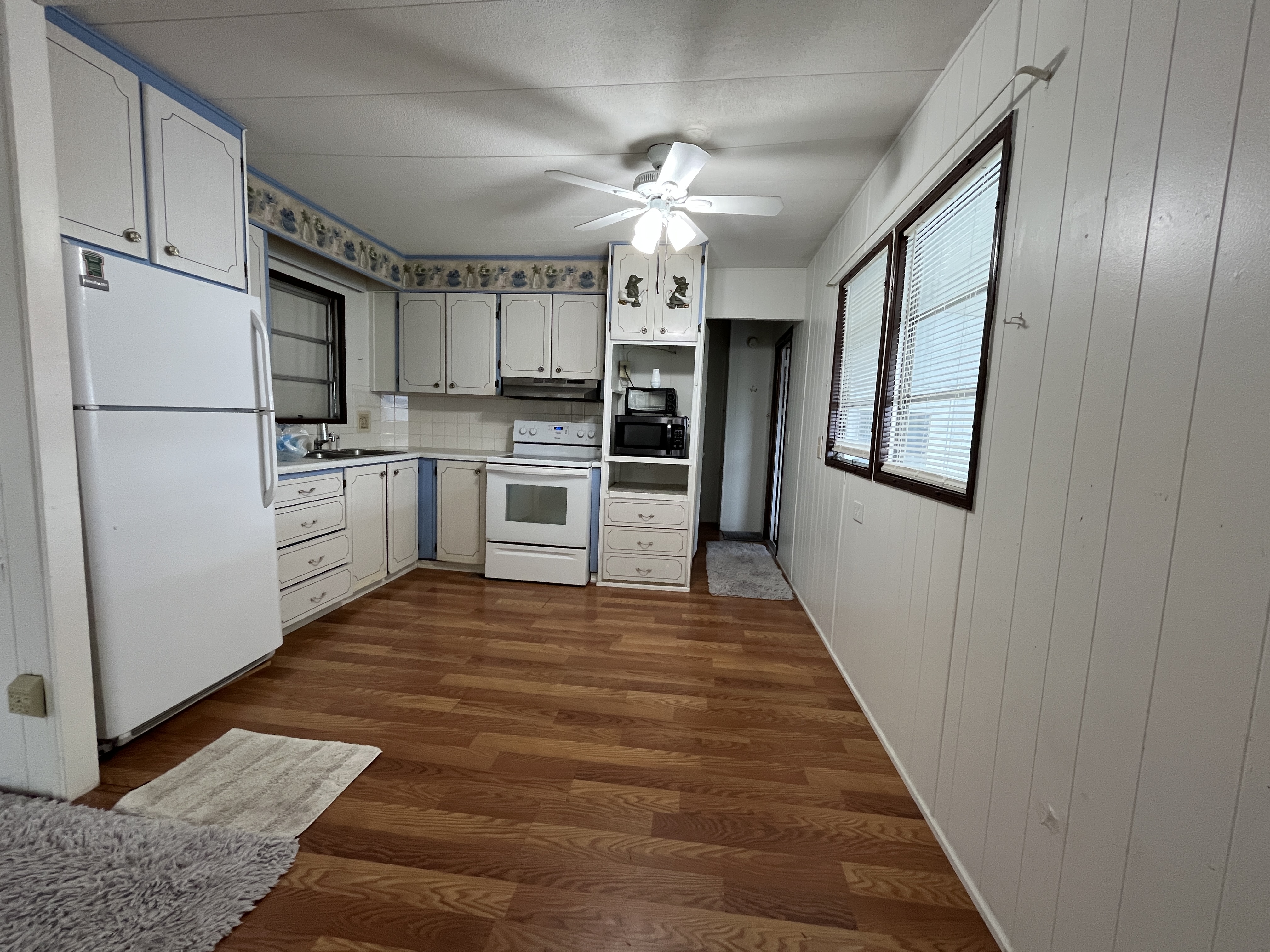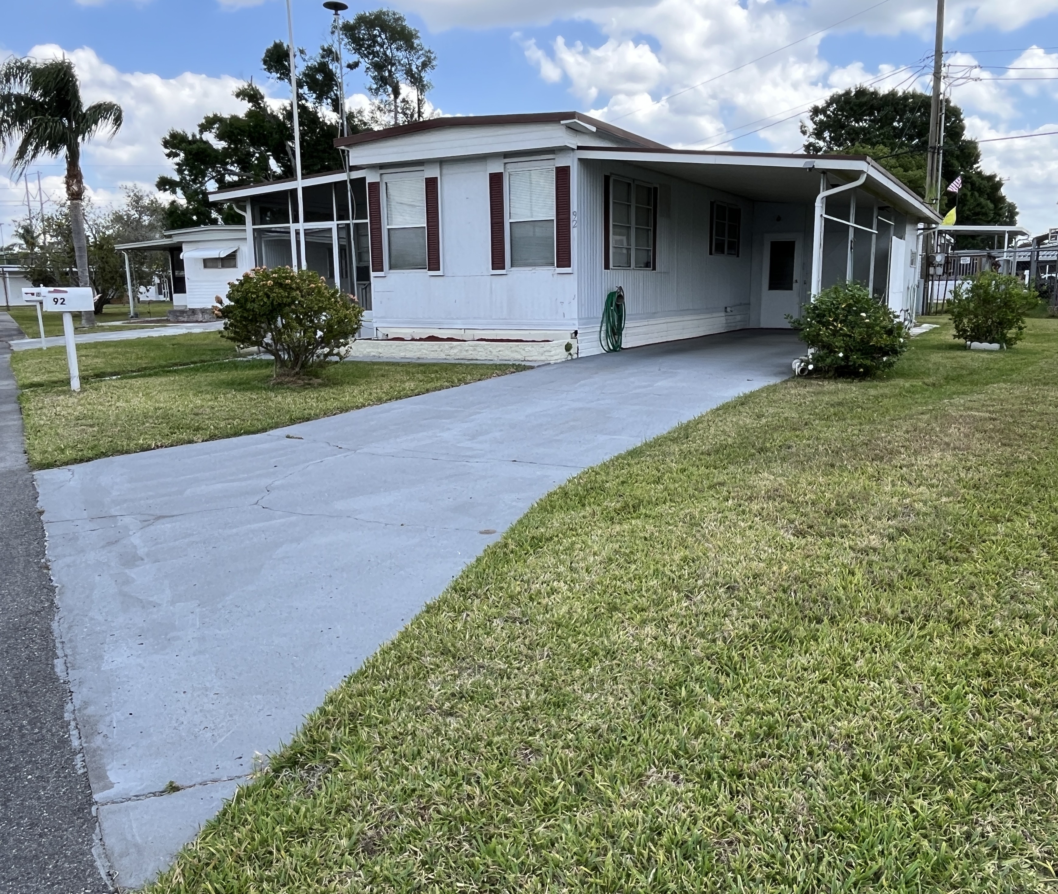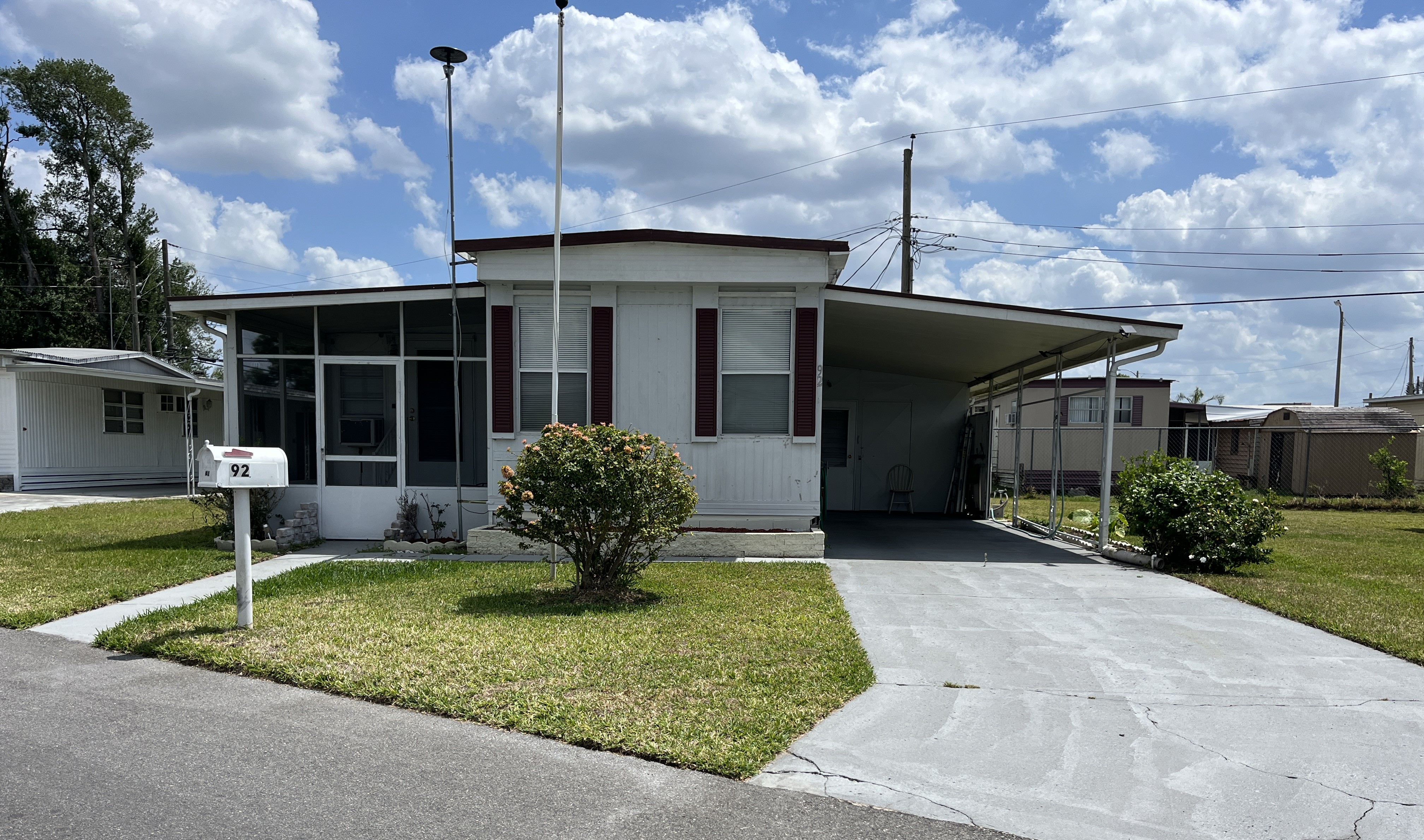 This home, located in a 55+ community, has a large open floorplan to living, dining and kitchen. If you need additional space there is another large room adjacent for extra entertaining needs, home office or a special reading or puzzle area. This 2 bedroom 1 bath has some updates and simply charming. Washer and Dryer are located inside the utility which is enclosed so you don’t have to go outside to access it. Call to schedule your showing today! Twin Palms is an Active 55+ Adult community – the monthly Fee Package will include: Land-lease, Water, Sewer, Trash, Property Taxes, Cable/Internet, and Use of Resort style Amenities for $975.00. Twin Palms is pet friendly.. Amenities include a beautiful clubhouse with kitchen, darts, library, heated swimming pool, shuffleboard courts, pickleball courts, gaming area, dog park and a laundry facility. Also available at our sister community right next door is Mini Putt-Putt. Twin Palms is a seasonally active park and is called by our residents as, ‘The Place To Be’.
