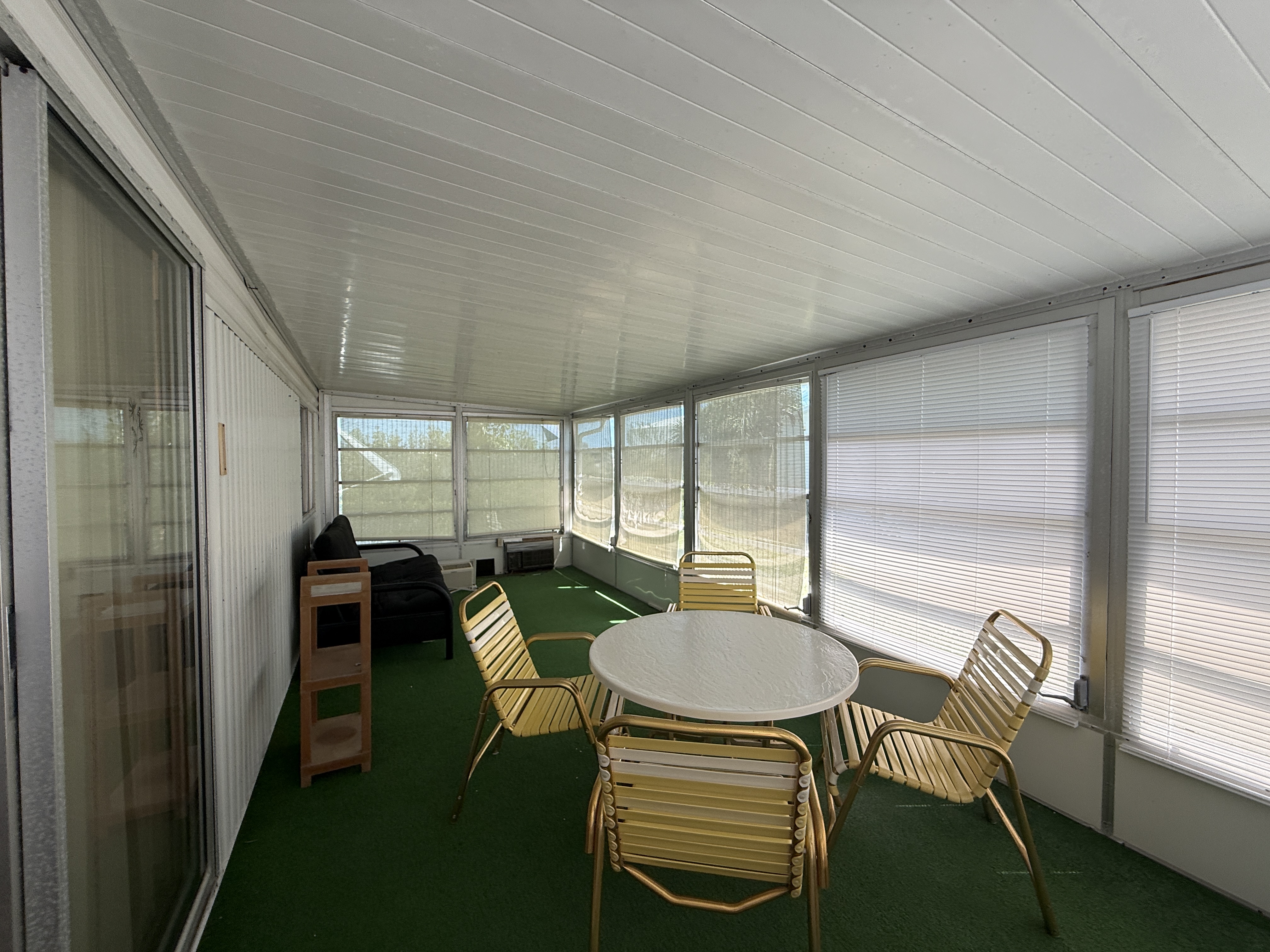 Aluminum Siding; Carpet; Carport; Ceiling Fan(s); Central A/C; Community Clubhouse; Community Pool; Covered Porch; Dishwasher; Dryer; Enclosed Porch; Florida Room; Garbage Disposal; Gated Community; Hot Water Heater; Metal Roof; Microwave; Non-Smoking Owner; Parking - 2 Car; Pet Friendly under 45 lbs; Oven/Range; Refrigerator; Shed; Tub/Shower Combo; Vinyl Tile Flooring; Walk-In Closet(s); Walk-In Shower; Washer; Water View; Window Treatments;